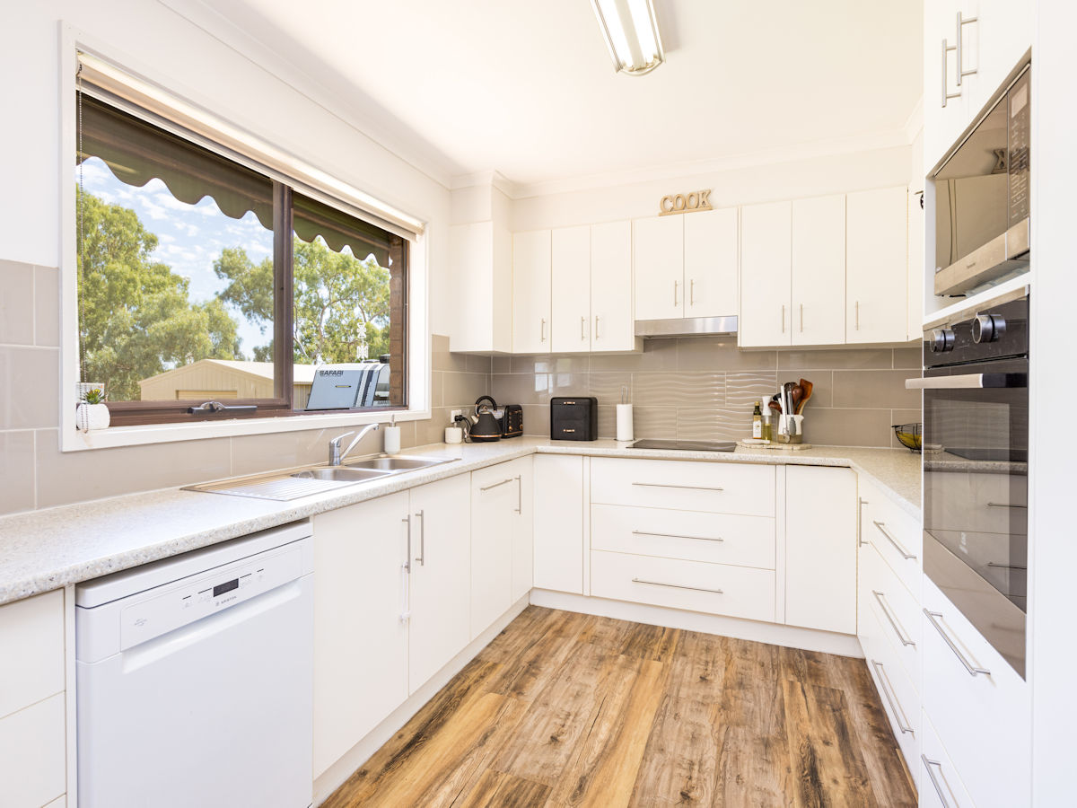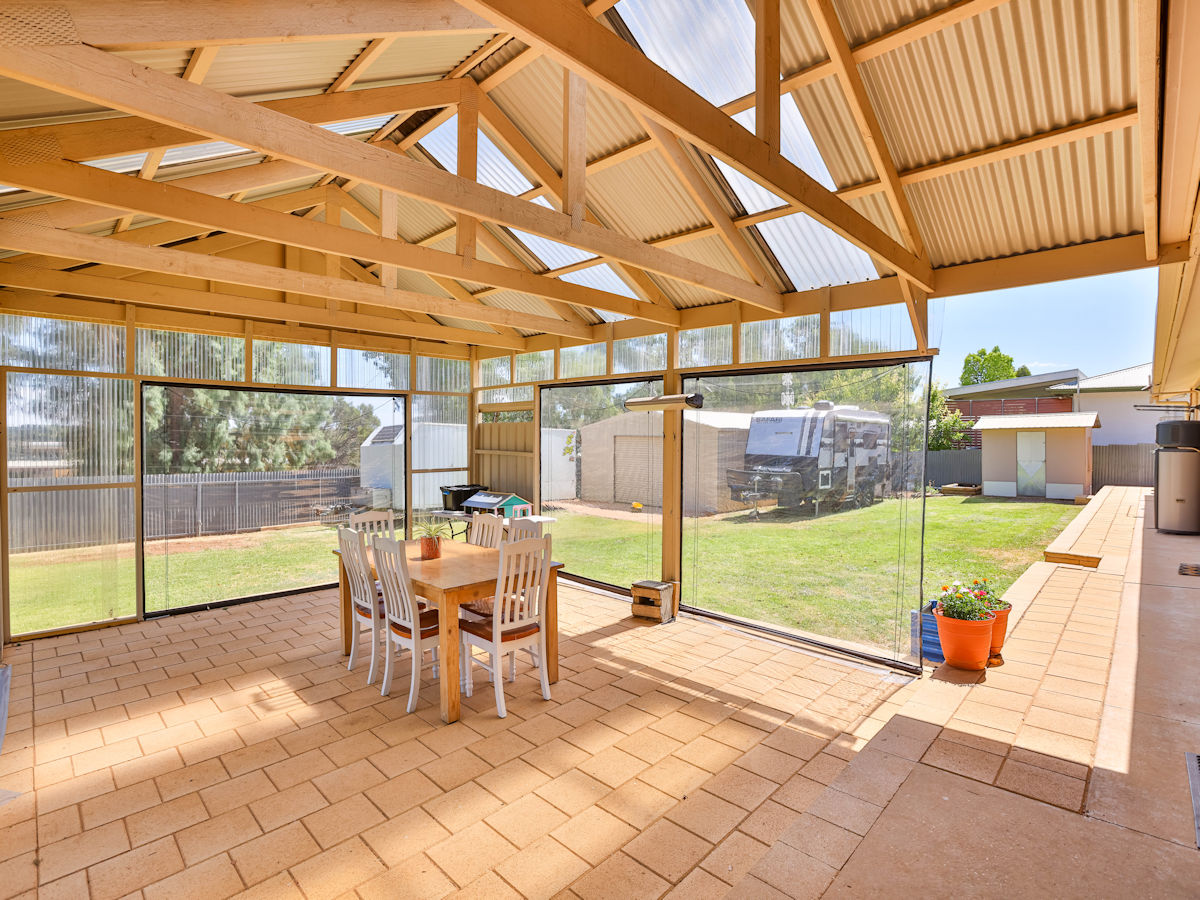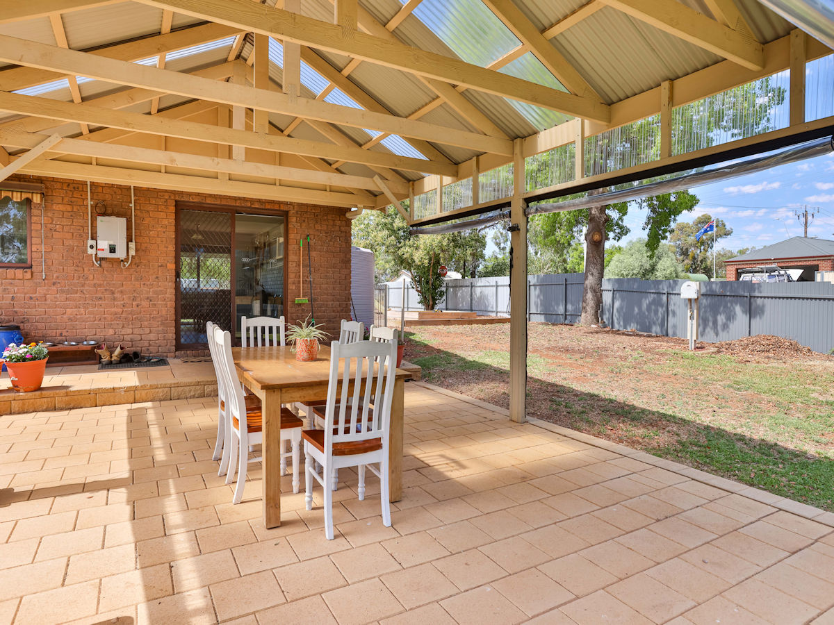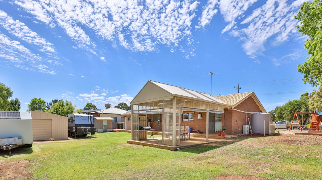 This solid brick home features 3 large bedrooms & 2 beautiful new bathrooms! Just a short stroll to Merbein shops, schools, parkland & and the river, and only a short drive to Mildura. The master suit features walk through robe to a stunning new ensuite, the other two bedrooms with BIRs are generous in size! With spacious lounge room (with split system r/c) and a great modern kitchen, offering plenty of pantry room, bench space, dishwasher, & excellent views over the rear yard. Step outside to the massive paved high pitched outdoor entertaining area with elevated scenic tree-lined views, huge fully fenced grassed backyard and a massive shed with excellent rear access. Complete with ducted evap cooling & 5 kw solar - this home is ready to move in & enjoy!