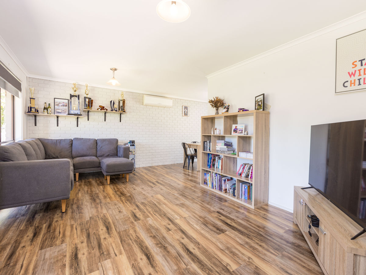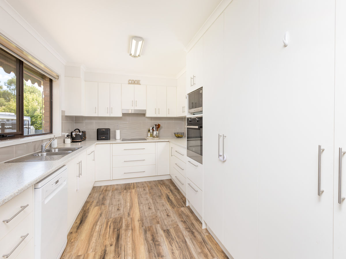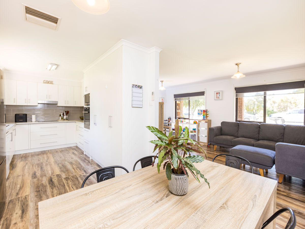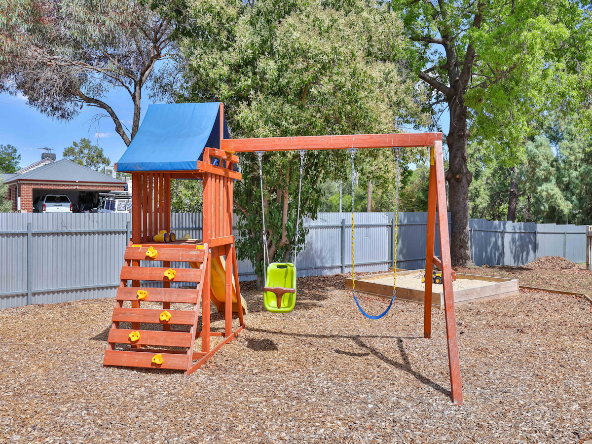 This solid brick home features 3 large bedrooms & 2 beautiful new bathrooms! Just a short stroll to Merbein shops, schools, parkland & and the river, and only a short drive to Mildura. The master suit features walk through robe to a stunning new ensuite, the other two bedrooms with BIRs are generous in size! With spacious lounge room (with split system r/c) and a great modern kitchen, offering plenty of pantry room, bench space, dishwasher, & excellent views over the rear yard. Step outside to the massive paved high pitched outdoor entertaining area with elevated scenic tree-lined views, huge fully fenced grassed backyard and a massive shed with excellent rear access. Complete with ducted evap cooling & 5 kw solar - this home is ready to move in & enjoy!