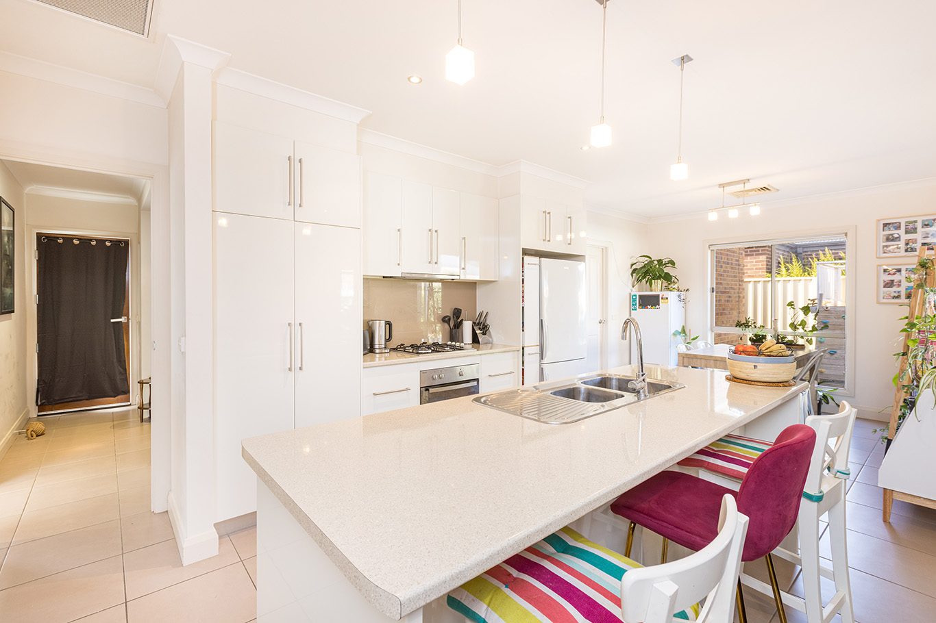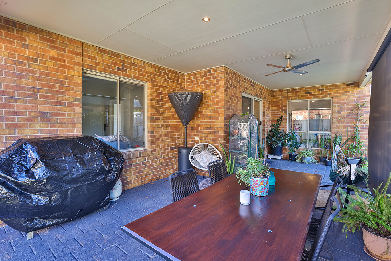 Enjoy space, privacy and low-maintenance living with this three bedroom, two bathroom home. With built in robes to all bedrooms, including the master with walk-through robe to ensuite, and ducted reverse cycle heating/cooling throughout. An open modern kitchen is the heart of the home, with quality appliances including natural gas cooking, dishwasher, plus plenty of storage and a large island bench, overlooking the second living zone and meals area. Outside features a generously-sized covered alfresco with ceiling fan and roller blinds for year-round entertaining, easy to maintain and fully-fenced rear yard, with clear side access (with double gates), ideal for caravans or boats, double garage under main roof and sought after location with great parkland at the streets end!