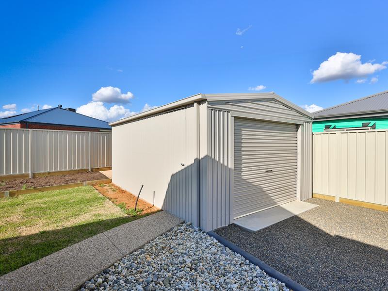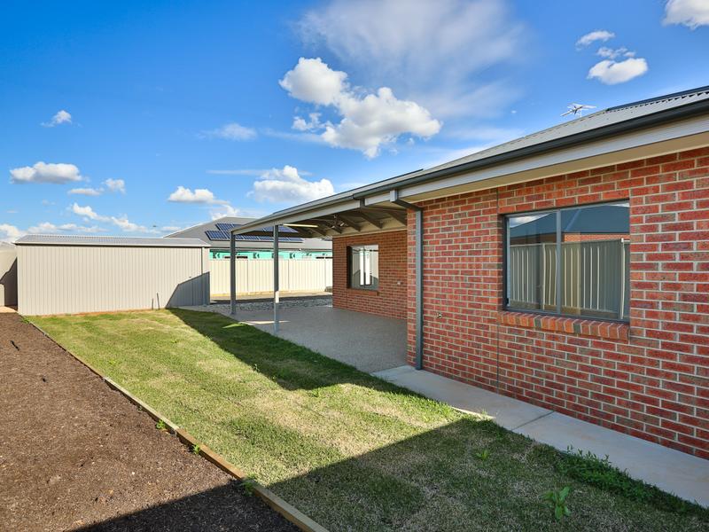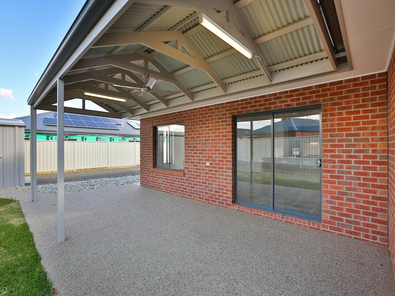 Complete with large undercover outdoor entertaining area with pebblecrete floor, pebblecrete driveway, 4m x 6m shed (floor, lights, & power), wide gated vehicle access (ideal for boat, caravans or trailers), landscaping (including turf & sprinklers to front & rear), rainwater tanks, and location in one of Mildura’s most sought after areas, alongside beautiful parks, playgrounds and well-maintained parkland), don’t delay purchase today and move straight into your brand new home before Christmas this year!