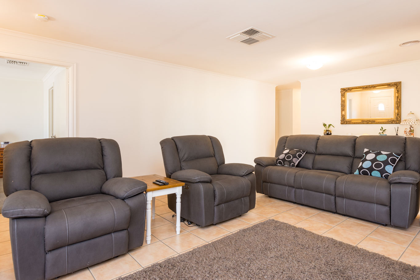 A family friendly home with 4 bedrooms, 2 separate living zones, a good sized shed with awesome outdoor entertaining area! Featuring large bedrooms, master with ensuite & walk In robe, bedroom two is enormous, great for a shared room or teenage retreat! With plantation shutters throughout, new carpets and new paint, this home is perfect to move into! The kitchen is the heart of the home with ample bench space and plenty of storage, the adjoining dining & family room leads out to the massive entertaining area, with an inviting fire place, perfect for entertaining all year round. Outside there are manicured established gardens, 6m x 9m shed with veranda, solar, & plenty of car parking space or caravan storage. Located close to shops, schools & parks!