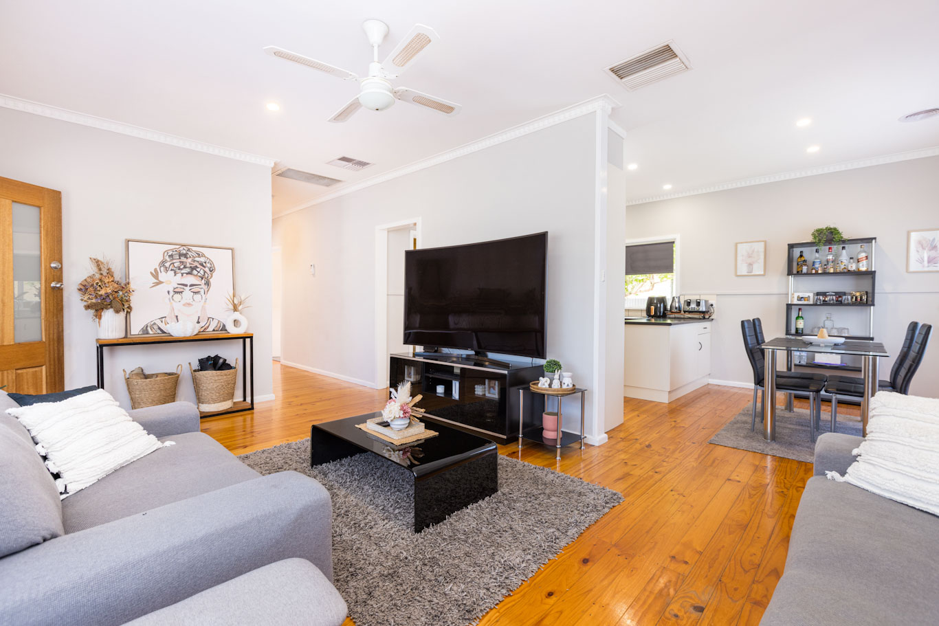 Beautifully presented inside and out is this well located 4 bedroom home. Whether you want to be close to schools, shopping, transport or parklands - this home is near them all. With 4 Bedrooms, 2 bathrooms, 2 separate living zones, modern kitchen with neutral colour schemes, ducted natural gas heating evaporative cooling, & feature floorboards throughout. With a huge and fully enclosed outdoor alfresco at the rear, making a fantastic man cave, leaving to the large shed/workshop, with a second spacious storage shed too. Complete with well maintained established gardens surrounded by high and secure fencing, great firepit spaces and wide double gate access, plenty of room to secure cars. boats, & caravans.