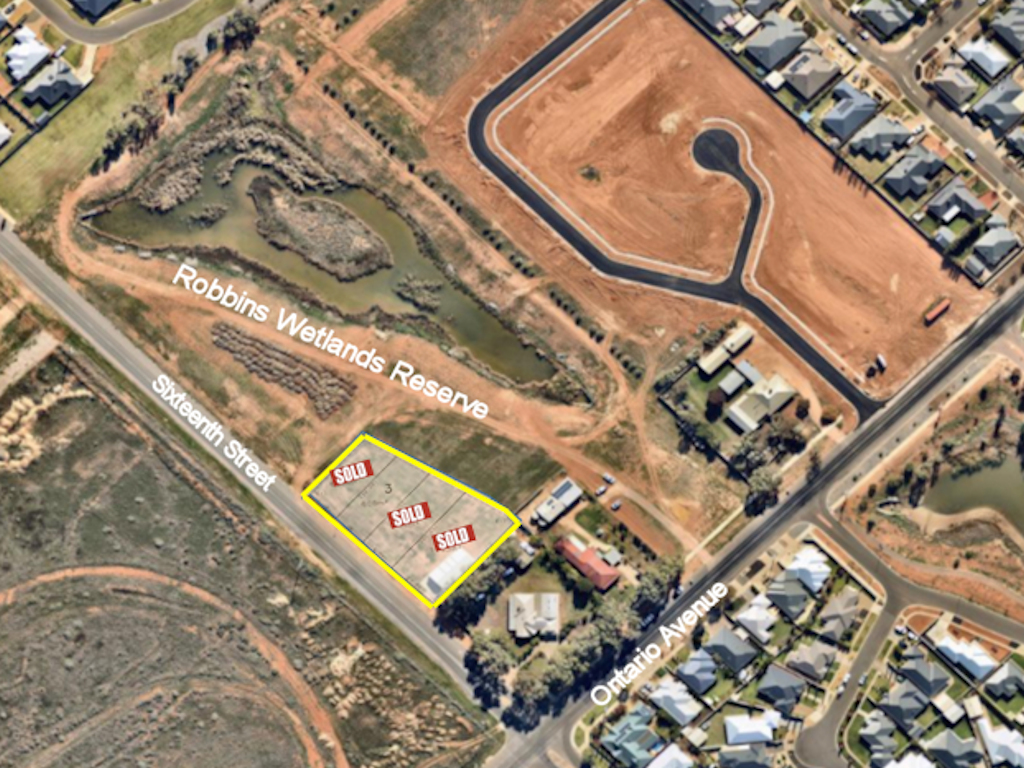 Last opportunity to build in this quality subdivision. Overlooking the Robbins Wetlands and located in Mildura's sought after residential growth corridor are these 4 spacious allotments, with all services including: Sewerage & Town water; Natural Gas; Concrete driveways; Roadside Curbing, & Footpaths. Lot 1 includes large well positioned 9m x 18 shed (with floor & parking bay).