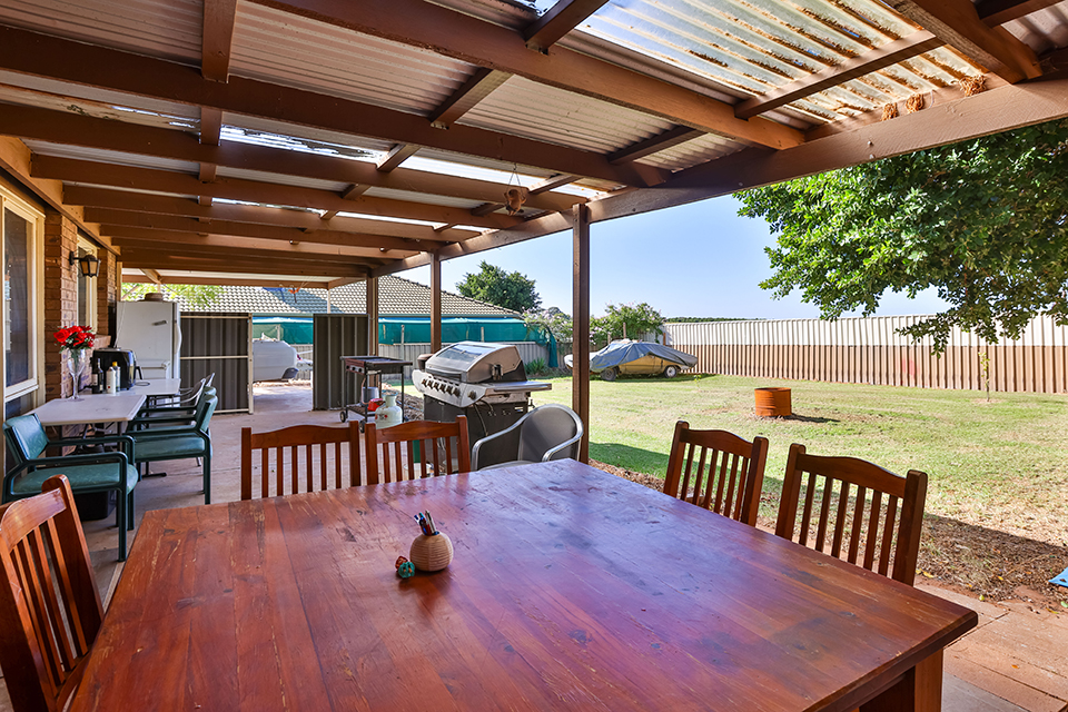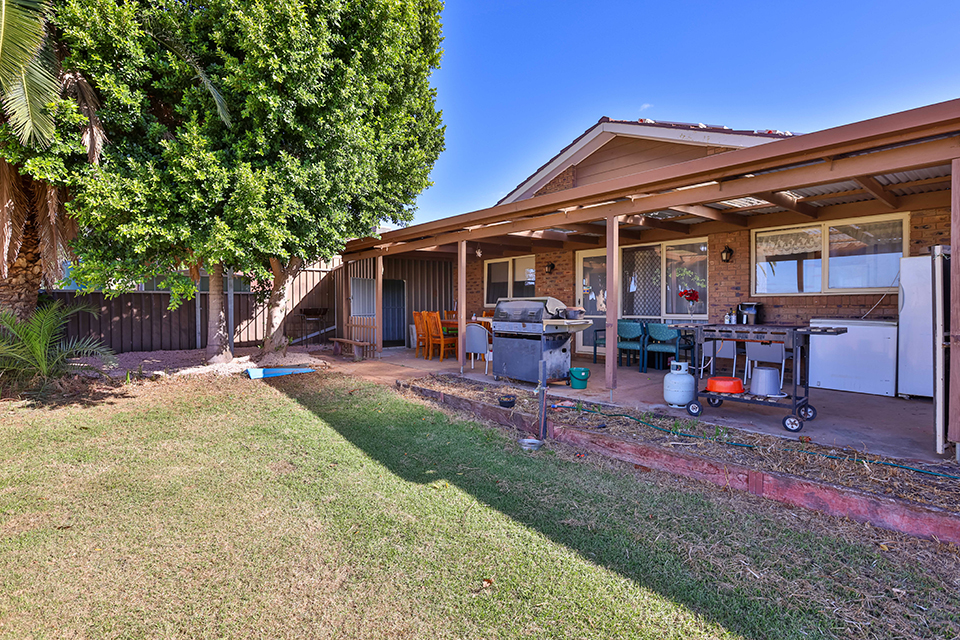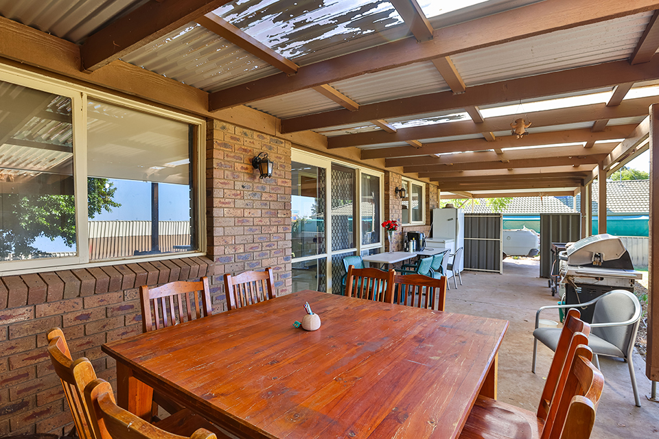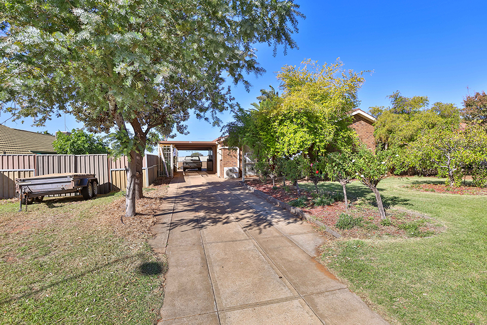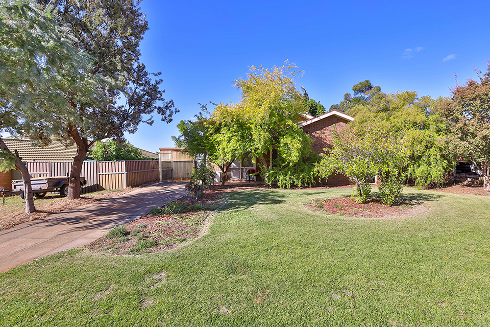 Nestled behind established front gardens in quiet Buronga street, just minutes drive to Mildura's CBD is this solid three bedroom brick veneer home. Featuring two separate living zones, large reverse cycle split system heating/cooling, built in robes to all three bedrooms, and functional kitchen with peaceful external outlook, pantry & dishwasher. Outside features bonus external second bathroom with second toilet, & the large undercover outdoor entertaining area has great elevated views over the spacious rear yard. With solar connected, two car carport, garden shed, ample room for a massive shed, and the bonus of clear & wide side vehicle access to rear yard, ideal for caravans, trailers or boats, & expected rental of $390-$400 per week - investors & owner occupiers don't miss this affordable property.