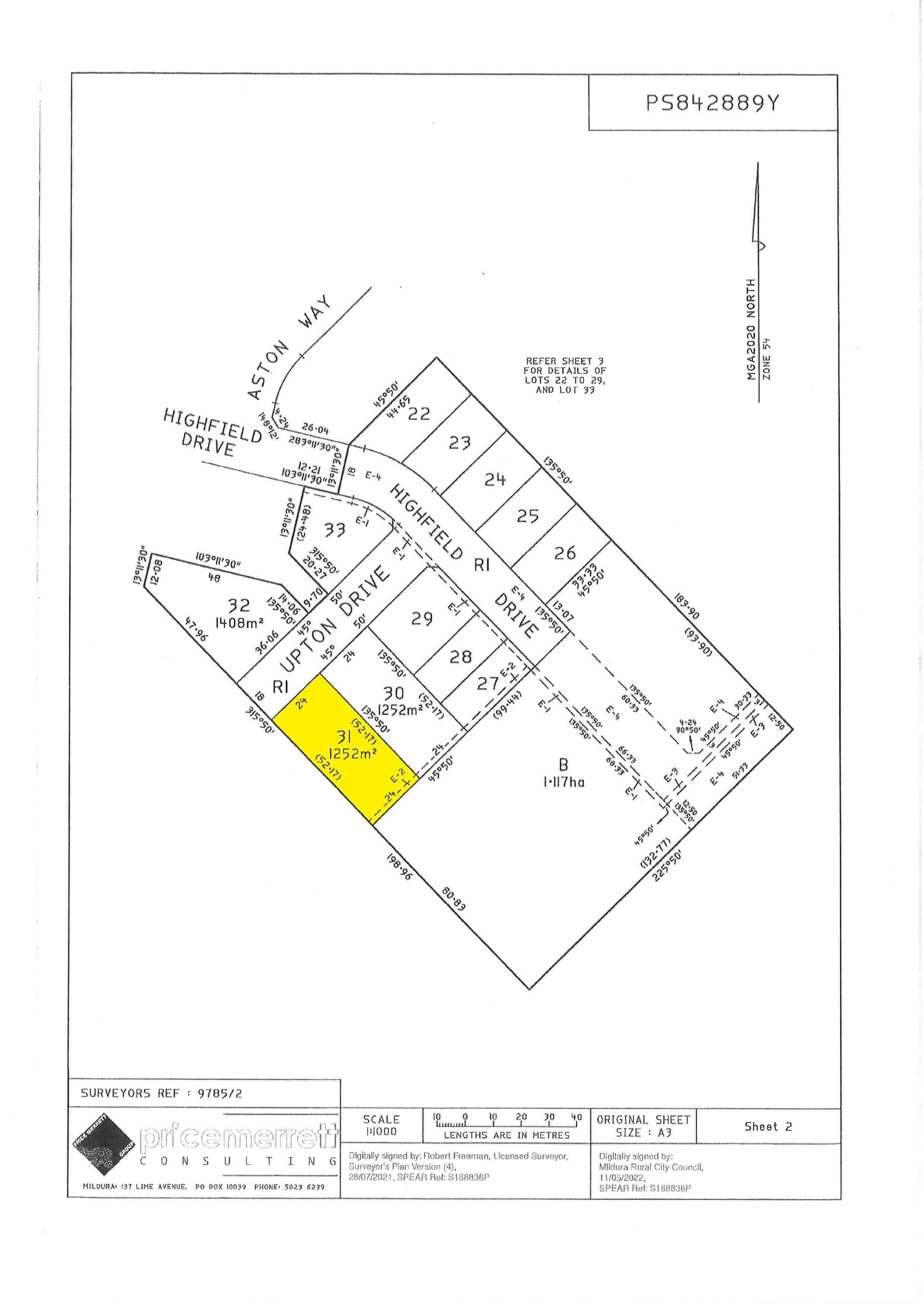 Titled and ready to build on is this rare 1252m2 allotment, just under 1/3 of an acre, in Mildura's brand-new sub-division 'Highfield Estate'. One of the largest lots in this popular estate boasting wide streets and a grand entrance. If you are ready to build your idyllic family abode this site is where you need to be. Offering sought after wide frontage of 24m, with excellent depth, and fully fenced to one boundary, with all services available to connect too. Set within the growth hub of Mildura's newest developing area with schools, parks and services all close by including Mildura South Primary School & Trinity Lutheran College, Mildura Airport, Mildura Sporting Precinct and Fifteenth Street shopping region including Mildura Central shopping centre, Aldi and the Coles Complex.
