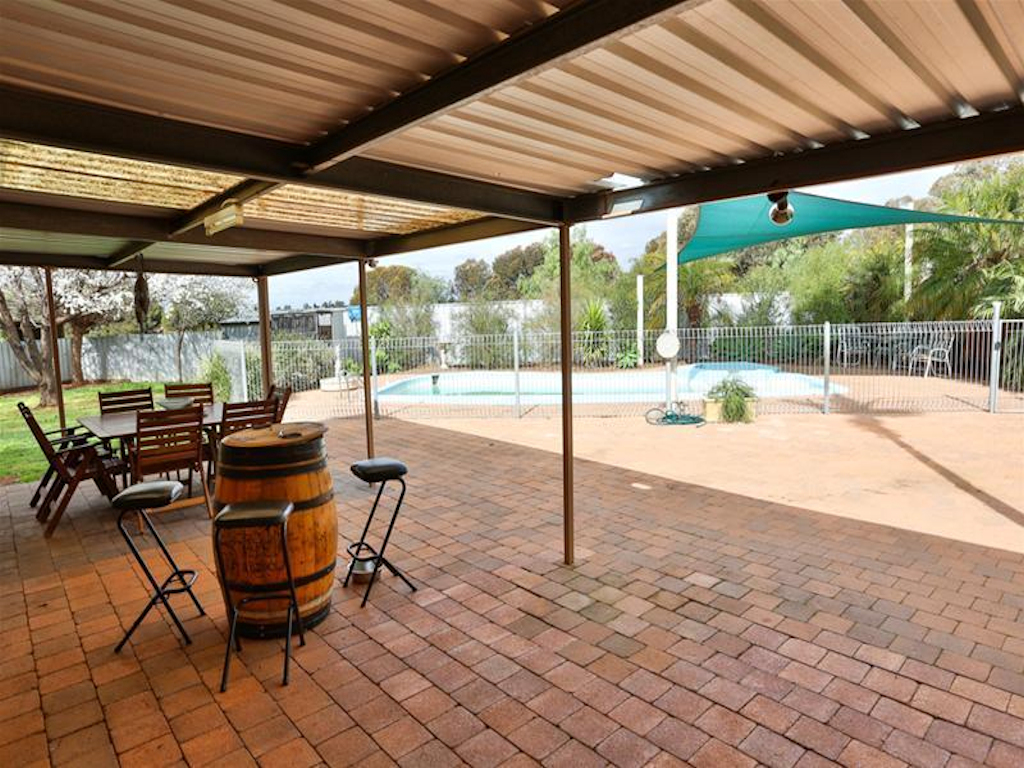 Superbly located in tree-lined rural court location and set on spacious 4028m2 of land is this wonderful 4 bedroom plus study home. Featuring two separate living zones, ensuite to main, large refurbished kitchen and meals area overlooking the large undercover outdoor area and pool. Outside features established gardens, fully enclosed yard, and massive 16m x 10m shed with ultra high clearance, floor, lights, power, & tv antenna - the ultimate "Man Cave". With separate full fenced rear paddock, ideal for kids mini footy ground, tennis court or for the pets to roam, and location alongside local Golf Course & close to The Lake Primary School and Mildura Central Shopping Centre - don't miss this rare and affordable gem!
