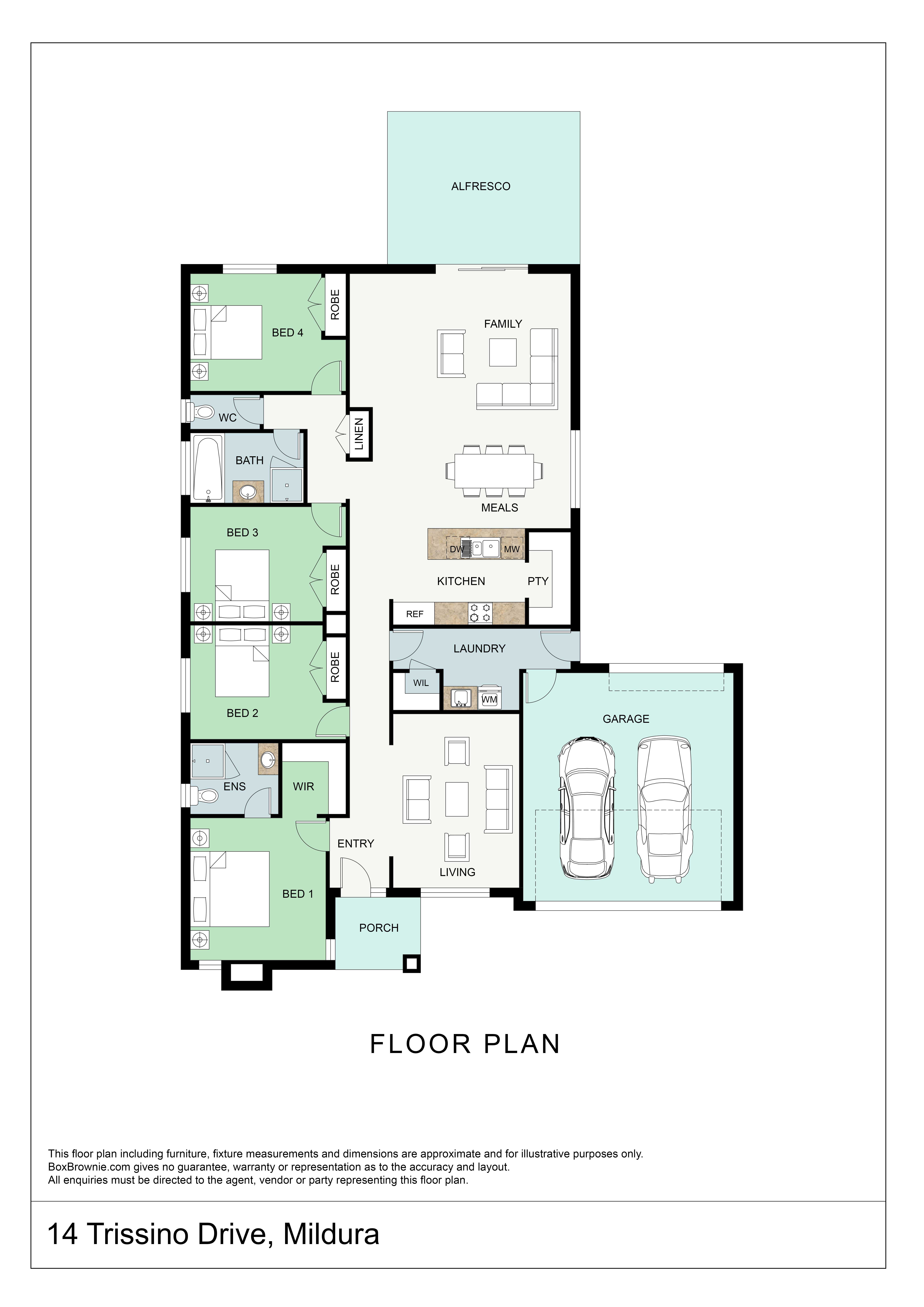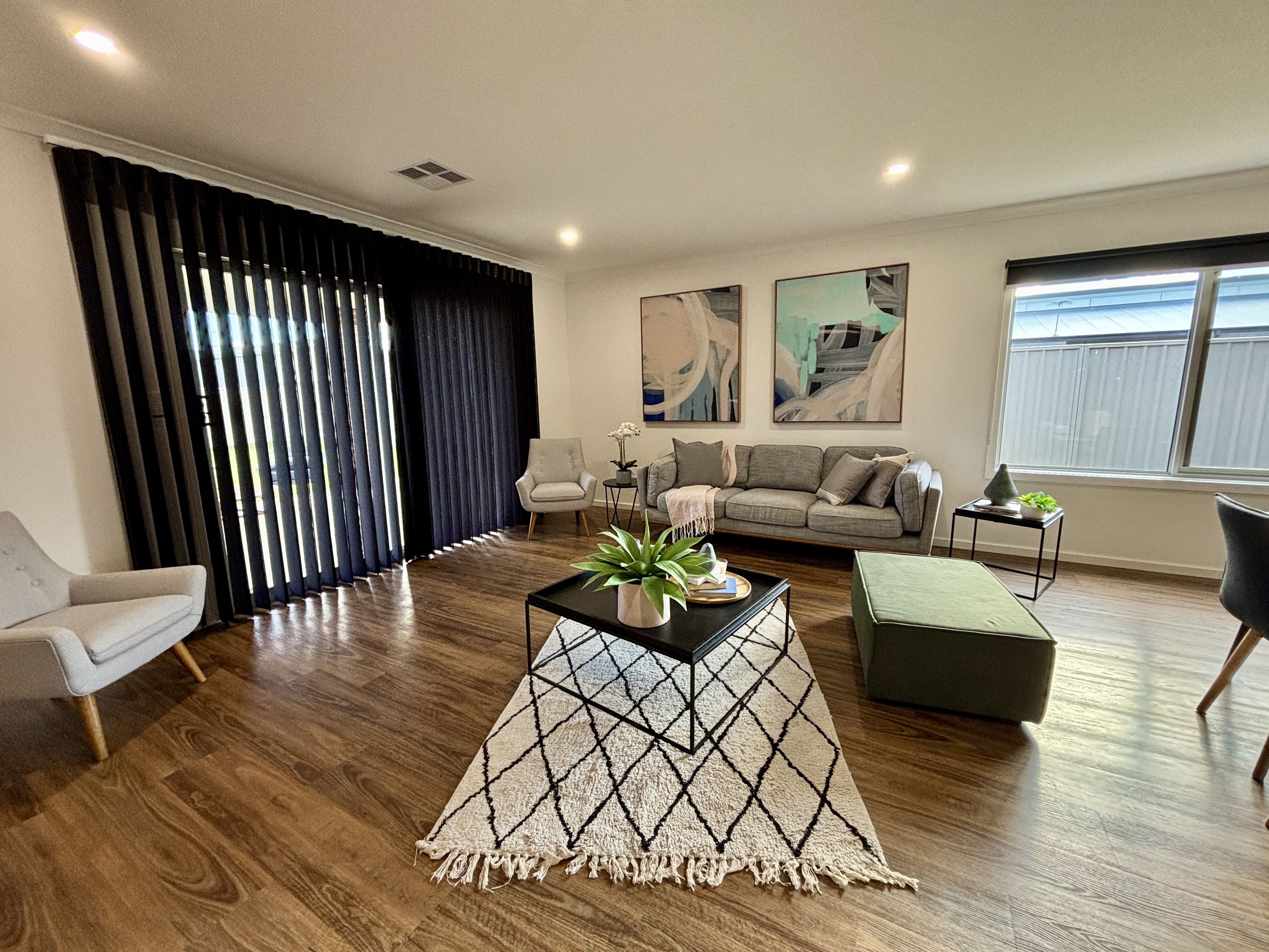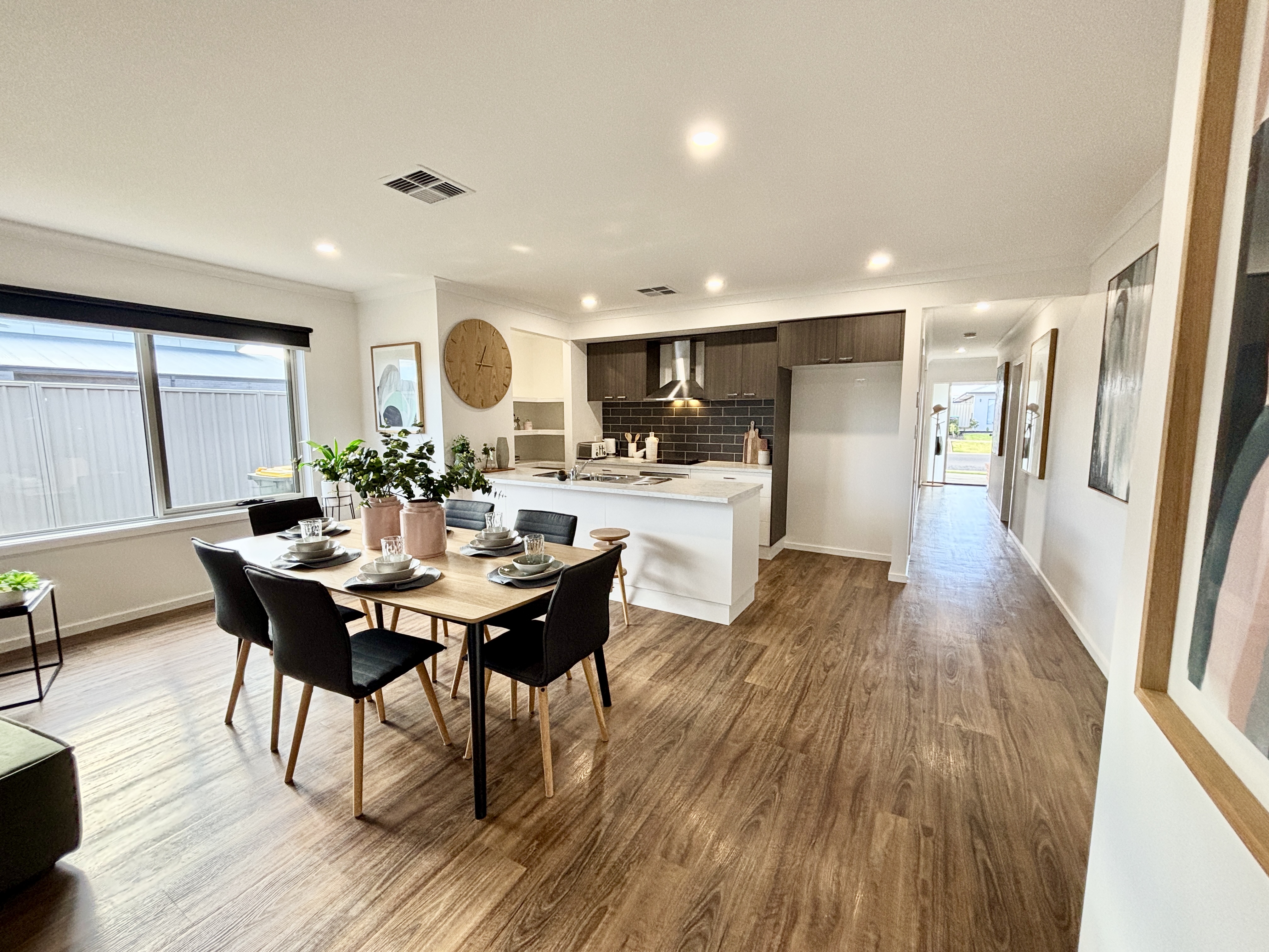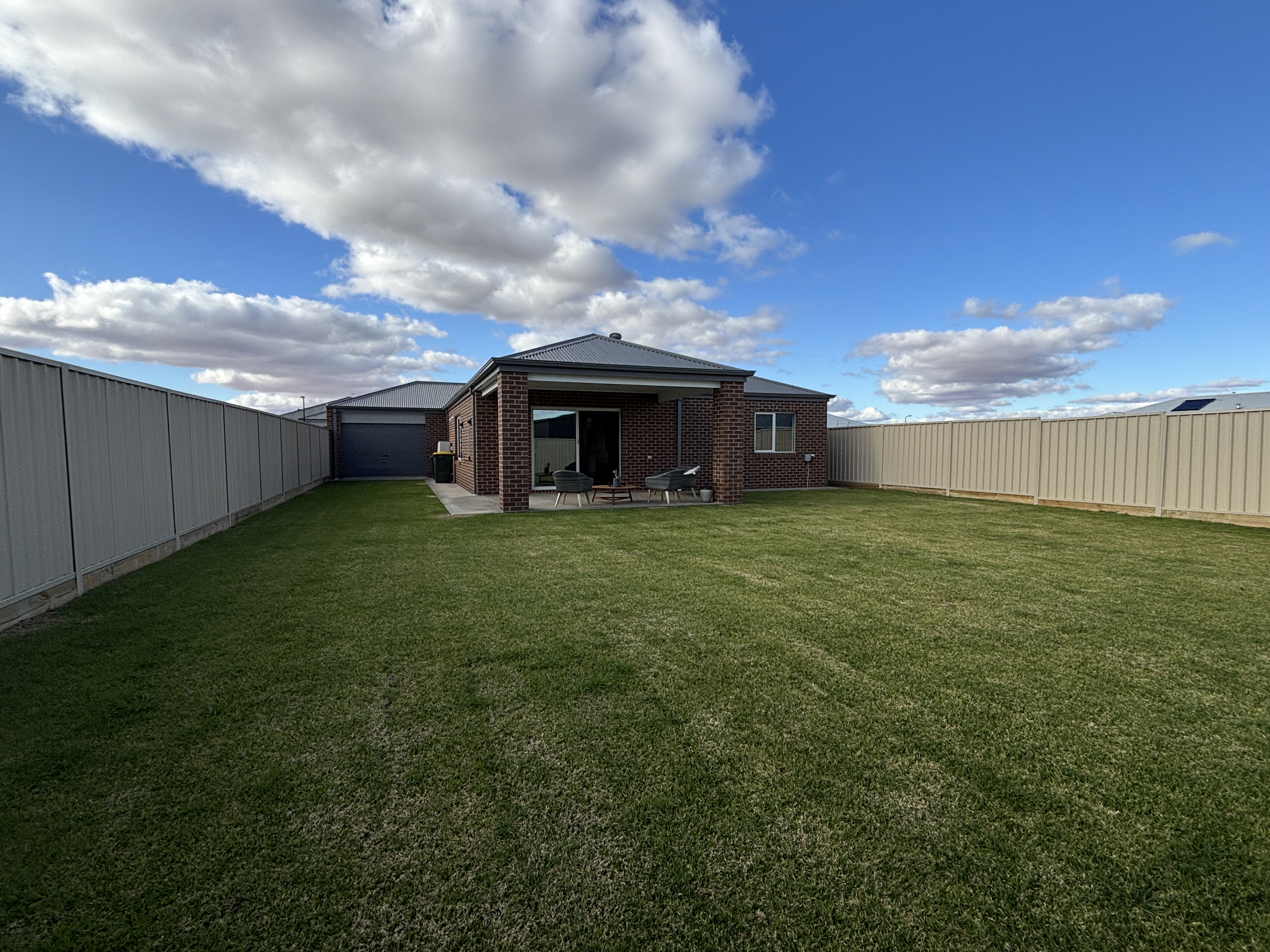 Street Appeal plus is this impeccable JG King home, only 12 months old with all the bells and whistles. A beautiful central kitchen with walk in pantry, adjoins a huge dining & family living zone plus A separate media room will keep the whole family entertained. Featuring 4 very generous bedrooms, master with WIR & ensuite, BIRs to all bedrooms. Reverse cycle ducted heating & cooling, walk in linen closet, sophisticated colour scheme throughout and stunning sheer blinds this home will impress! Step outside to an entertaining area under main roof surrounded by fully manicured & irrigated lawns. Surrounded by new beautiful family friendly homes close to Mildura Central, why build its all ready for you!