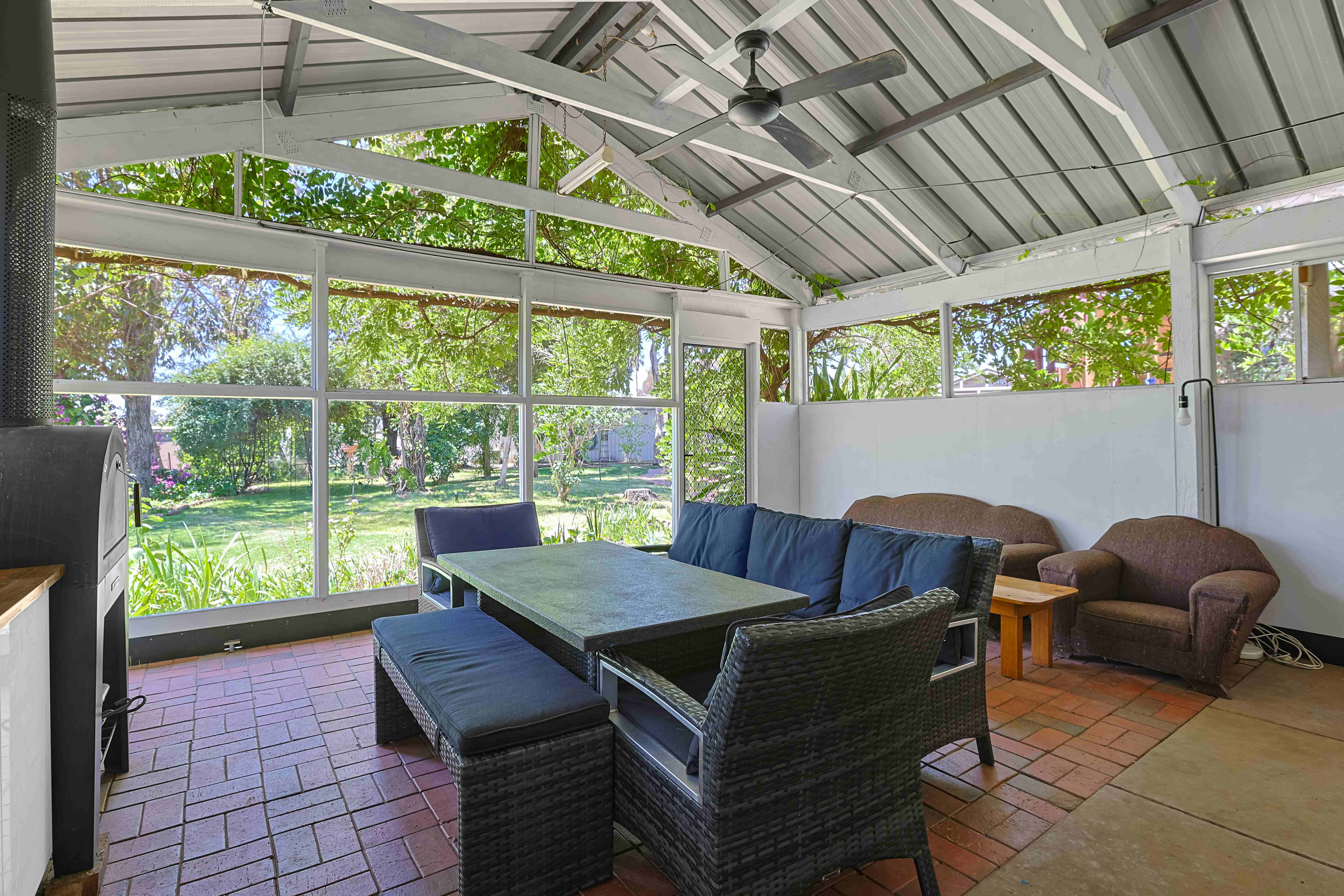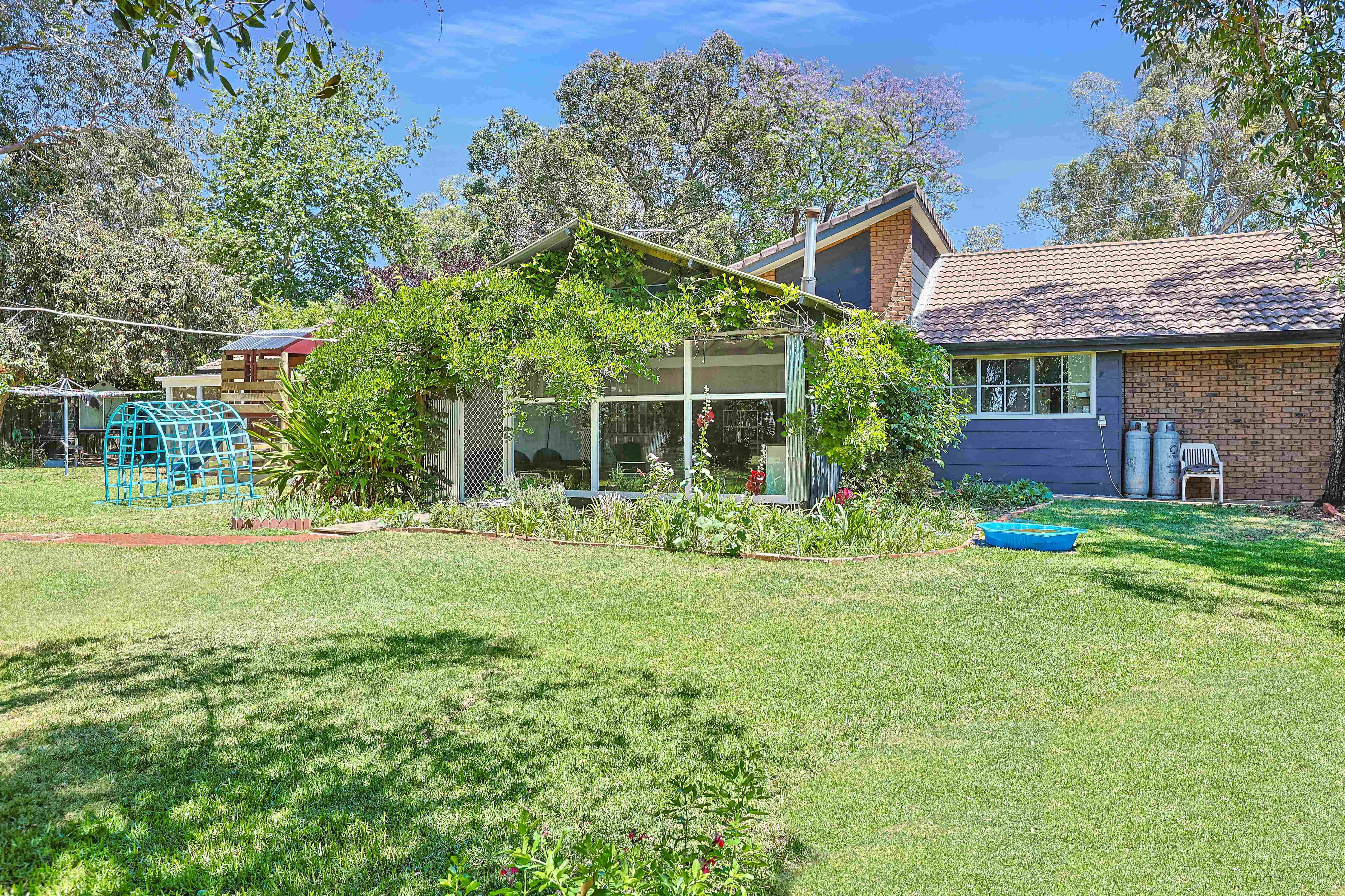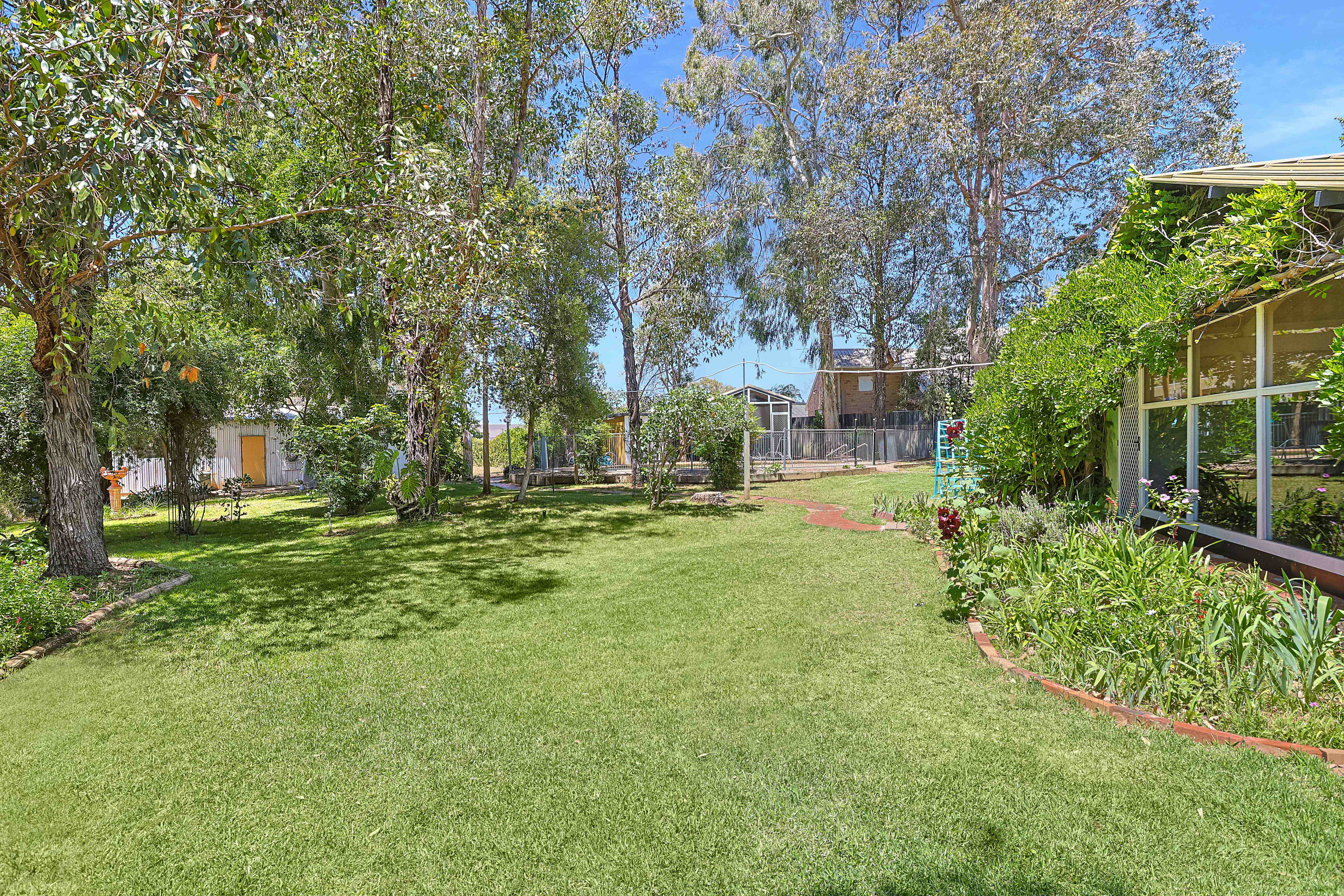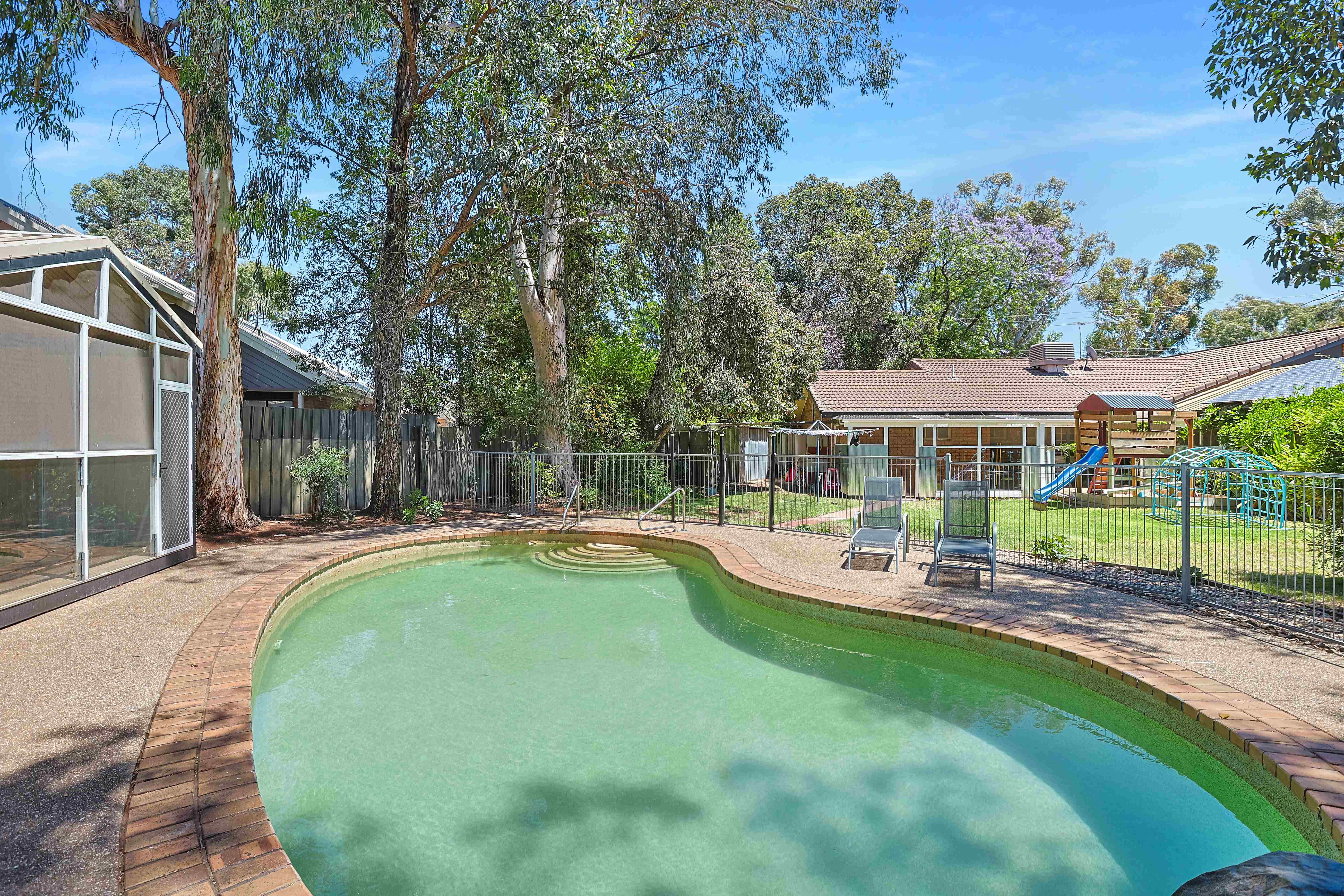 Just a short stroll to the river and sporting fields, set on generous 2,566m2 of land, is this large four-bedroom brick family home featuring soaring cathedral ceilings. The updated kitchen with gas cooking seamlessly flows into the generous open plan meals and family living zone perfect for hosting family and friends. The master suite is complete with a walk-in robe, ensuite, and a private courtyard. All bedrooms are generously sized and have built in robes. Outdoors, the enclosed area with a built-in kitchen and a fantastic pizza oven provides the perfect setting for alfresco dining and entertaining. A outdoor cabana area, by the in-ground pool, makes a perfect spot for watching the kids & entertaining, and the pool (with robot pool cleaner incl) is equipped with an off-grid solar power DC pump. There is also public transport at your doorstep ideal for the kids who catch the bus to school. Complete with four rainwater tanks, your own chook pen, designated veggie patch, a 6m x12m (approx.) shed with power, and an array of fruit trees (Avocado, Lemon, & Mulberry), the home also features a convenient two-car carport with an automatic door, evaporative cooling throughout, two gas heaters, two updated bathrooms. This stunning property is a private oasis, offering a lifestyle of comfort and tranquility.