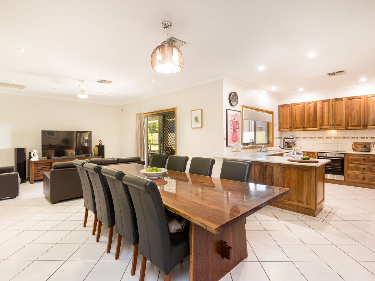 This beautiful solid home is spacious throughout with high quality fixtures including high ceilings and loads of room for the whole family! Boasting four enormous bedrooms with WIR's, the master suite with WIR & ensuite with spa. A formal lounge with beautiful timber floors plus a HUGE Rumpus Room to the rear of the home complete with Big Screen Projector that opens up to the outdoor entertaining area. The central kitchen with new appliances, corner pantry and plenty of storage, overlooks the rear yard, and adjoins the dining and family room. There's a large office perfect for working from home, and ducted reverse cycle aircon/heating throughout (& roof solar). Step outside to the under roof entertaining area and lush manicured back yard, with huge shed plus garden shed, water tanks and irrigated sprinkler system, and side gated access - all this & just a short stroll to Kings Billabong.