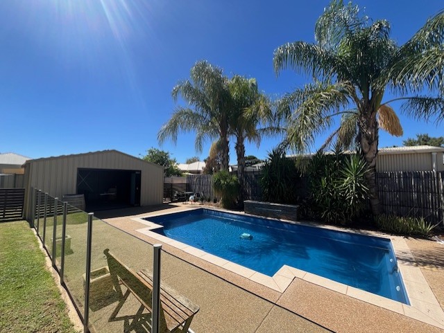 A beautiful four bedroom home set in a great Westside location. Perched upon 670m2 this modern home boasted a stunning inground pool with pool house, perfect for Mildura’s hot summers! Offering two seperate living zones with a large modern kitchen and family room, leads to the great outdoors, under roof entertainment area, overlooking the lush, manicured backyard, inground pool and large shed/games room - perfect for entertaining. With reverse cycle ducted air con and heating, close to great schools, public transport, shops and childcare facilities, and expected rent of $650 per week, young families and investors don't miss this beauty!