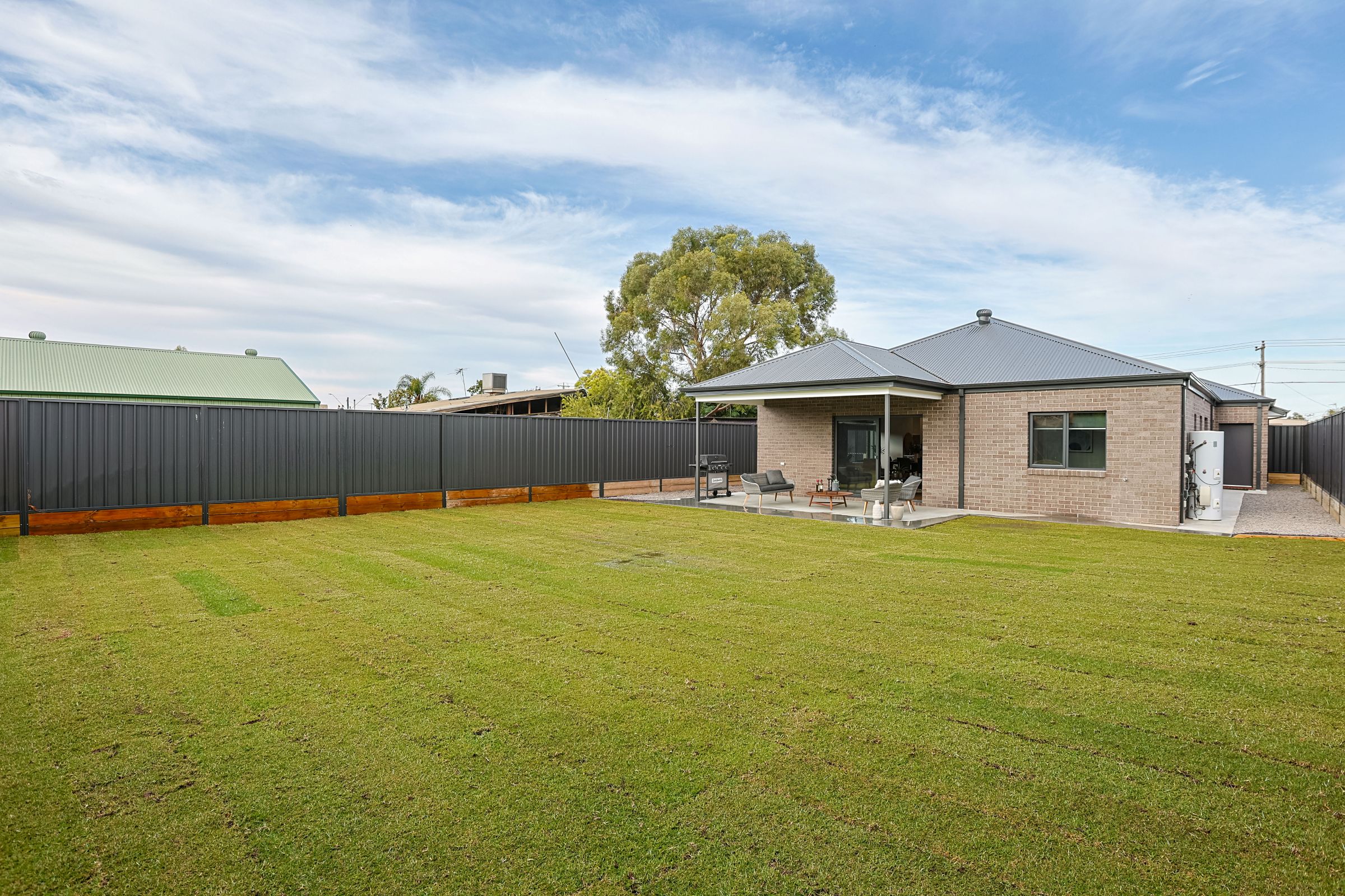 With a stunning Hampton facade and ideally located walking distance to all things the Mildura Riverfront & City Heart have to offer, is this tasteful 4-bedroom new home. Featuring 4 large bedrooms, master suit with WIR & ensuite and a separate living room. The modern kitchen with breakfast bar, walk in pantry & dishwasher, flows into the dining room & generous family living room. Boasting an on-trend color scheme throughout, reverse cycle ducted heating & cooling & stunning window furnishings this home has a very luxurious feel. Complete with outside to the under roof entertaining area, great manicured backyard with auto irrigation plus lane way access, perfect for a shed, boat or caravan! This home will impress, move in and relax!