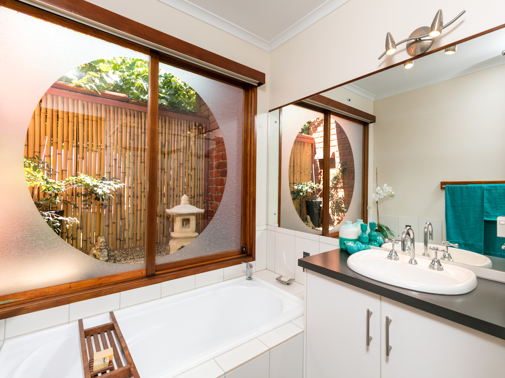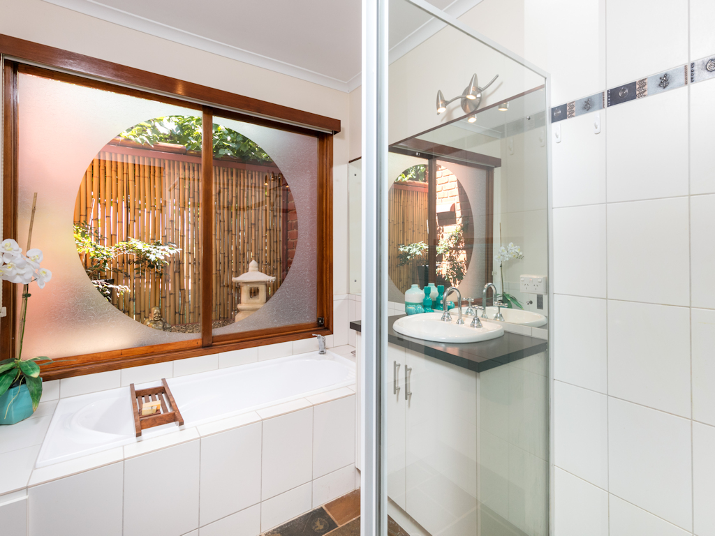 Outside features established and well-designed gardens (Japanese-theme throughout), stunning vines protecting the home from sun, fully enclosed yard, salt chlorinated in-ground pool (with solar blanket), undercover entertaining area, pool shower and large stainless steel outside cooking zone (with built in gas BBQ & Cooker), large 30’ x 60’ shed with floor, lights, power, and caravan bay.