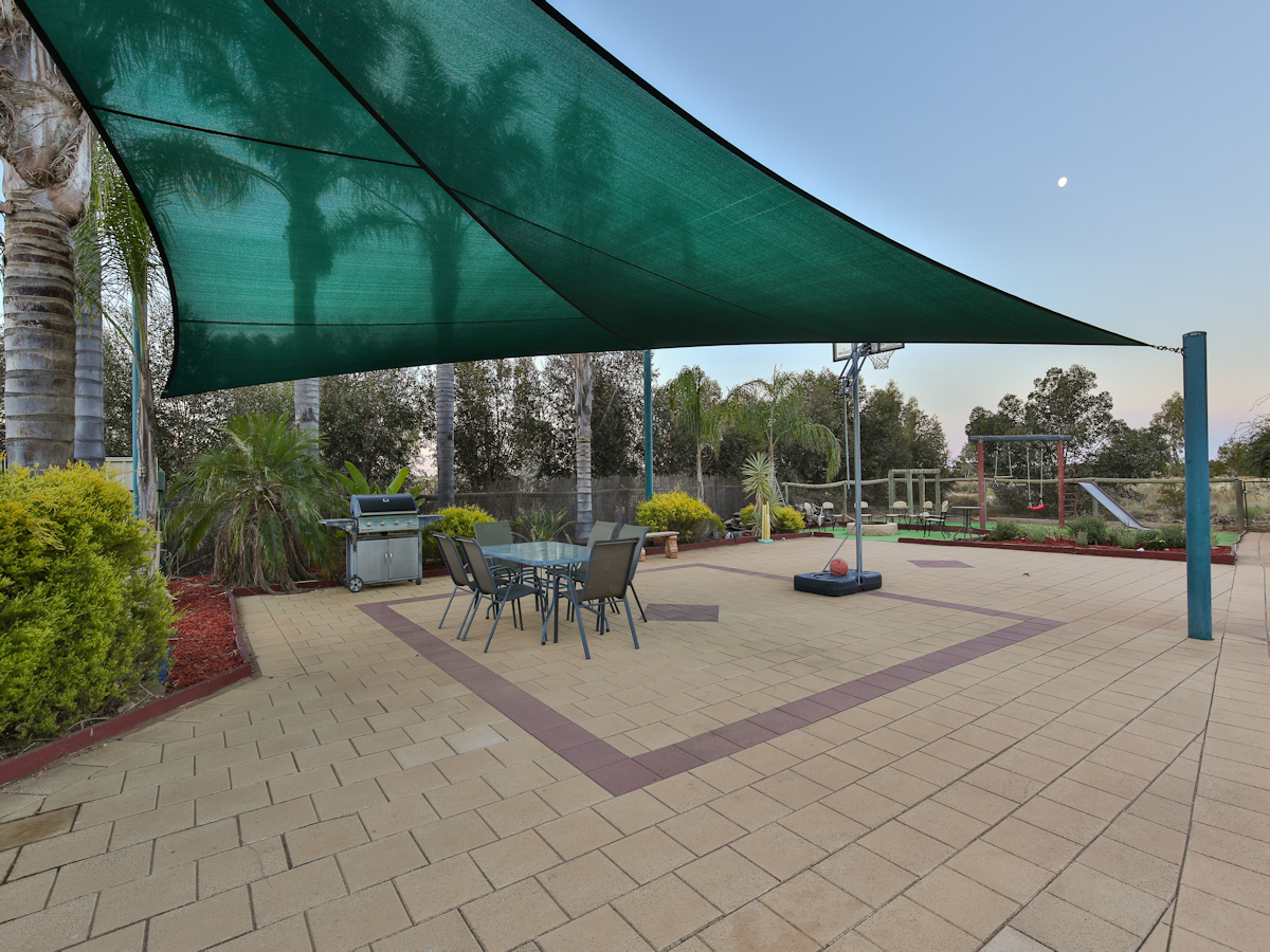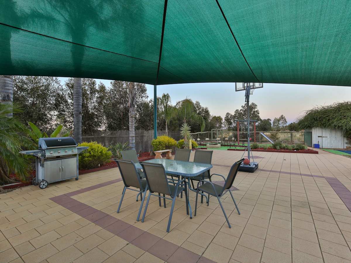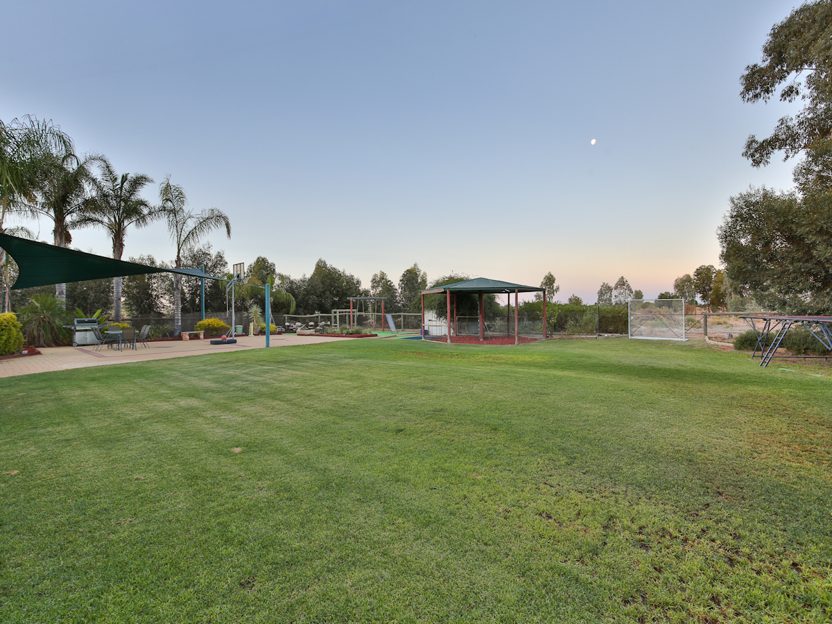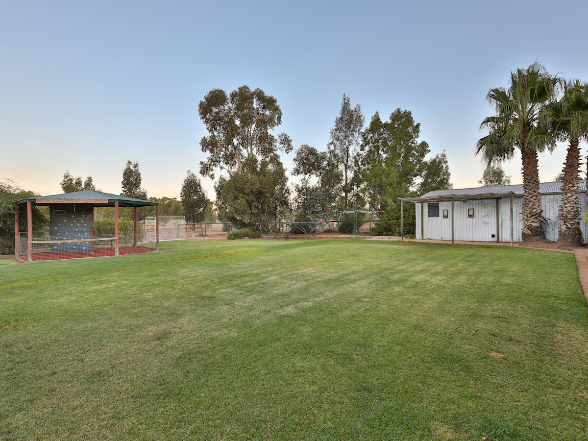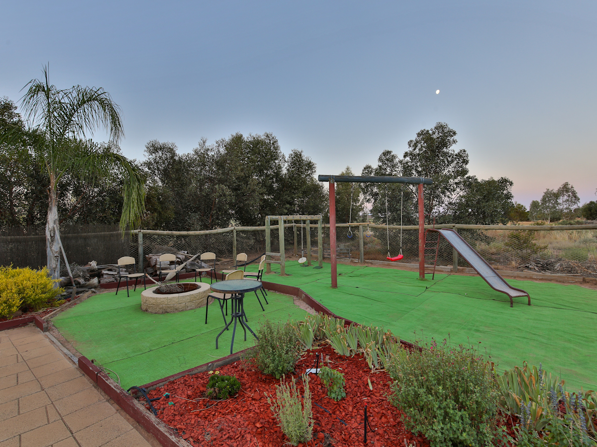 Set on awesome 8708m2 with town water, and just a 5 minute drive to Schools & Mildura Central Shopping Centre is this 4 bedroom, 2 bathroom home. Fully surrounded by verandahs and established gardens, inside the home has been fully repainted throughout with new flooring, ducted cooling with large reverse cycle split system in lounge, and connected to 3kw solar power system. Step out to the fully decked pool with awesome outdoor entertaining area, overlooking the huge fully paved all year round outdoor play area, covered by giant shade sail, and kids adventure playzone (with rock climbing wall). The spacious rear yard is fully enclosed and the large shed has floor lights and power. With vacant paddocks to the rear, ideal for motorbikes, horses, or just as a space from neighbours, this a rare lifestyle opportunity so close to town.