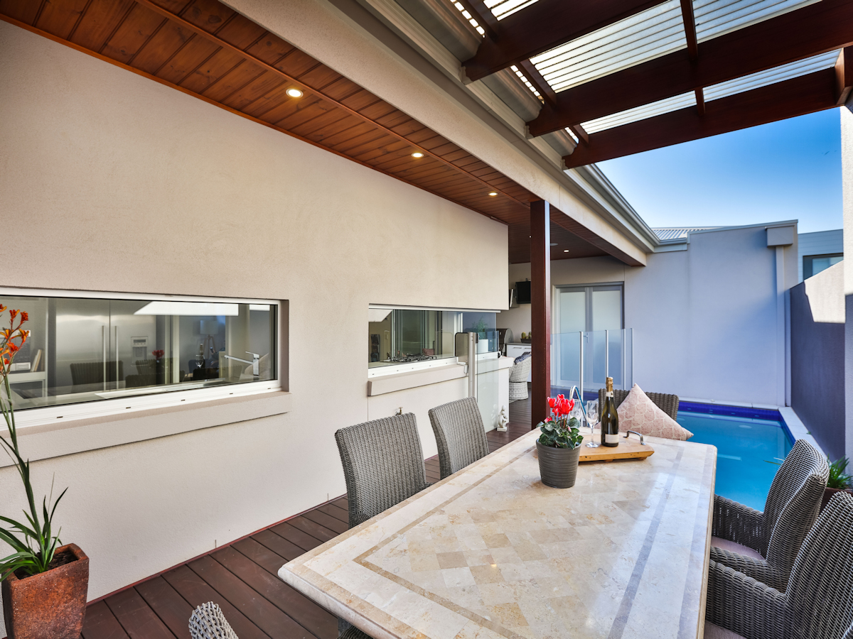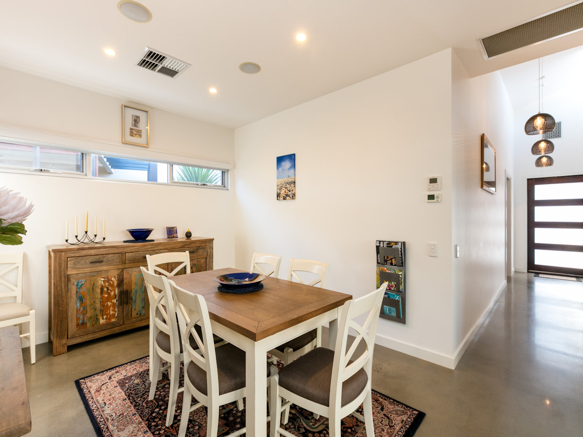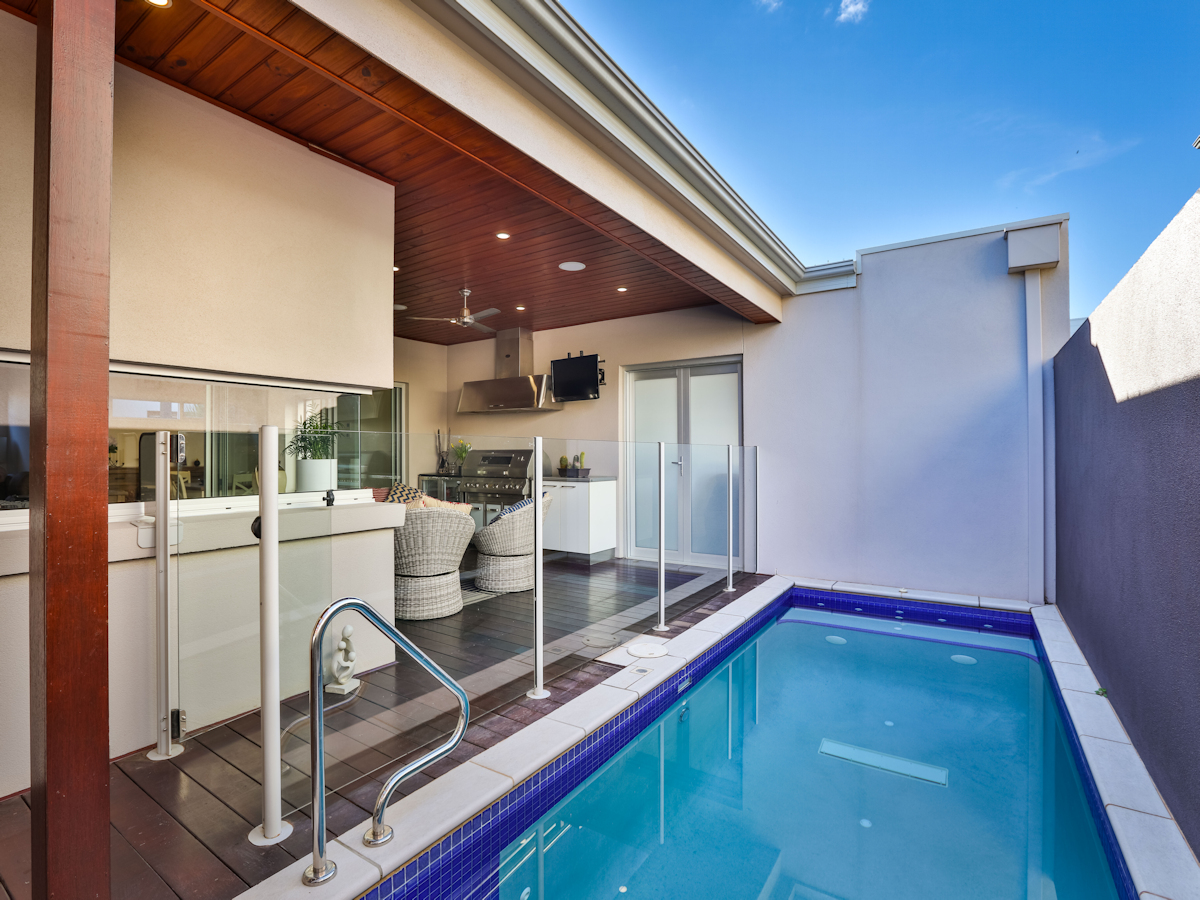 Stunning modern low maintenance as new home in the popular Mildura Dockside Marina. Craftsman built and architecturally designed this home features towering ceilings throughout, along with ducted reverse cycle heating/cooling, surround sound, polished concrete floors, formal lounge/theatre room, 3 large bedrooms and built in office and two beautiful bathrooms. The main living rooms all surround a well-designed Merbau decked outdoor entertainment area (with BBQ & TV) overlooking the modern solar & natural gas heated, self cleaning, salt chlorinated plunge pool, opened up to the home by glass stack doors. The chefs kitchen features stone benches, mirror tone cupboards, Miele stainless steel appliances and full size butlers pantry (with second sink, plumbed fridge, dishwasher, and ample extra bench space). With Mildura's stunning riverfront and cafes just a short stroll away, don't miss this opportunity to enjoy a lifestyle most can only dream of!