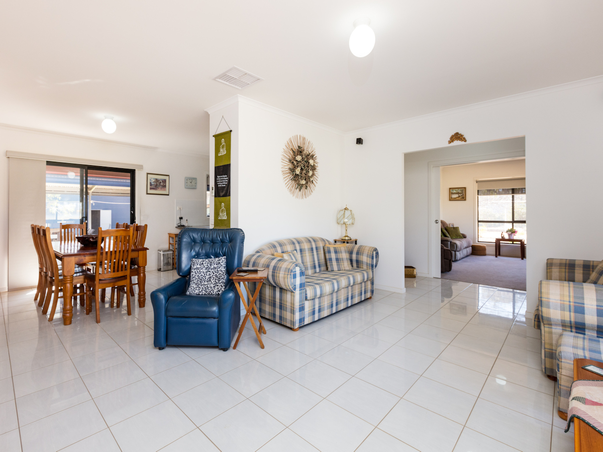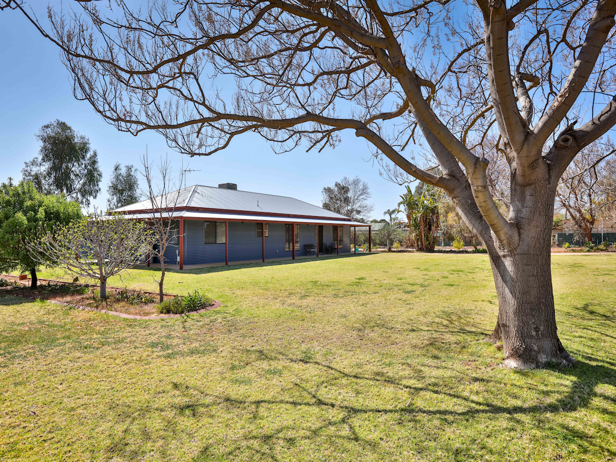 A short stroll to the Coomealla Club, Golf Course, & the Murray River is this beautifully presented as new home. Built by Col Gowers 5 yrs ago and surrounded by beautiful established gardens & lawns, this steel frame home features 3 bedrooms, two separate living zones, huge well-designed kitchen, large bathroom & 2 toilets. Wide verandahs surround the home & outside features include a huge pitched roof outdoor entertaining area overlooking the expansive yard and massive shed with floor, lights, power, parking bays & auto opening doors. Complete with town water, 3 megs rural water, & rain water storage (w/pump), the property is fenced with auto gates - so you can love the property's peace & quiet or lock-up & travel!