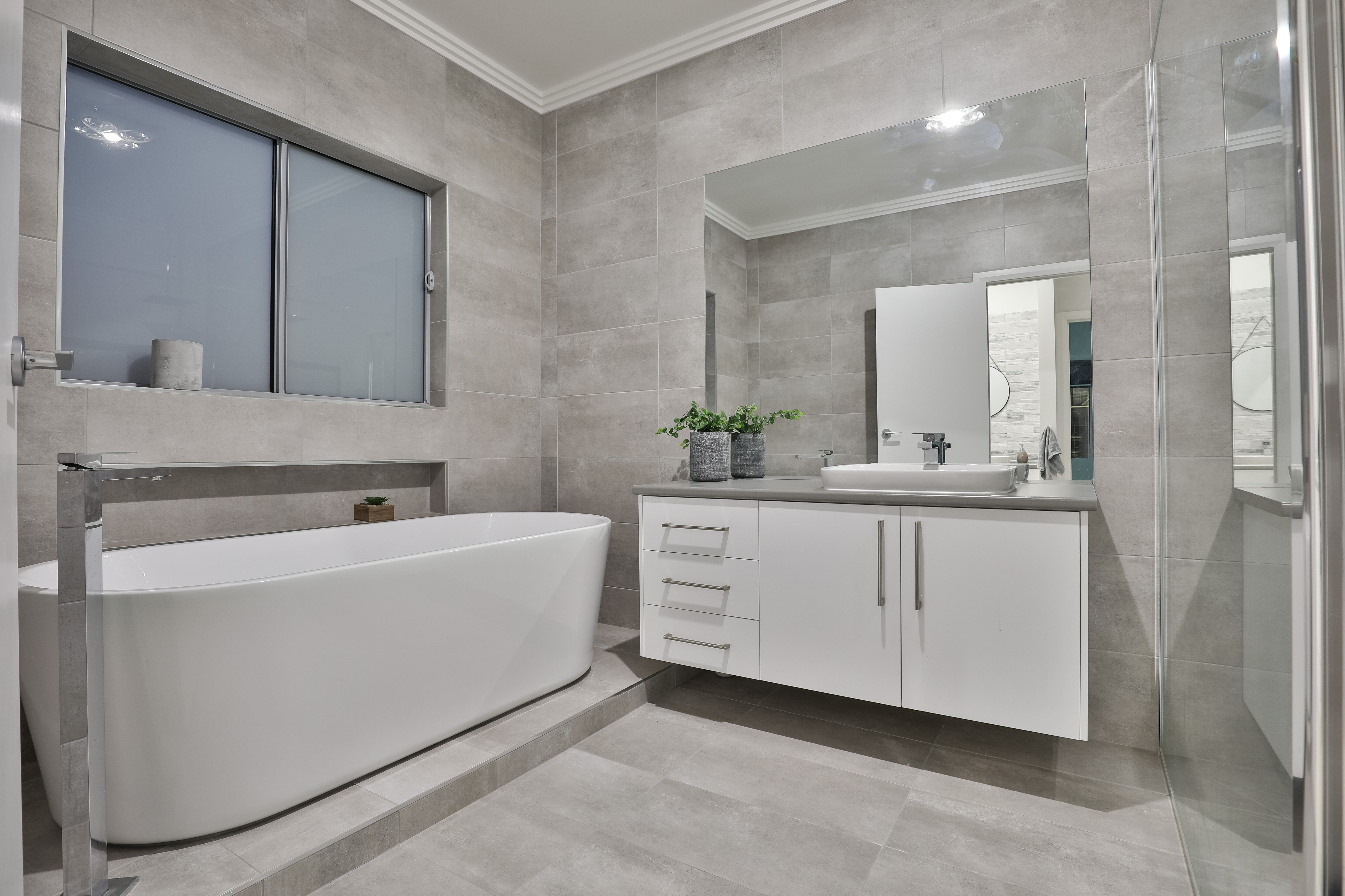 *Floor to ceiling tiling in bathrooms