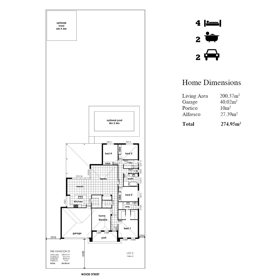 Thinking of building? We have the ideal house and land packages for growing families or first home owners. Located within minutes of preschools, Gol Gol Public School, Gol Gol Hotel and the Murray River, Pine Wood Estate has blocks ranging from 813m2 - 1046m2. Sited on Lot 2 is the Hamilton floor plan, one of James Harwood Homes newest designs. Featuring 4 bedrooms, 2 bath with WIR & ensuite to the Master. Large family area and separate home theatre allows plenty of space for the whole family.