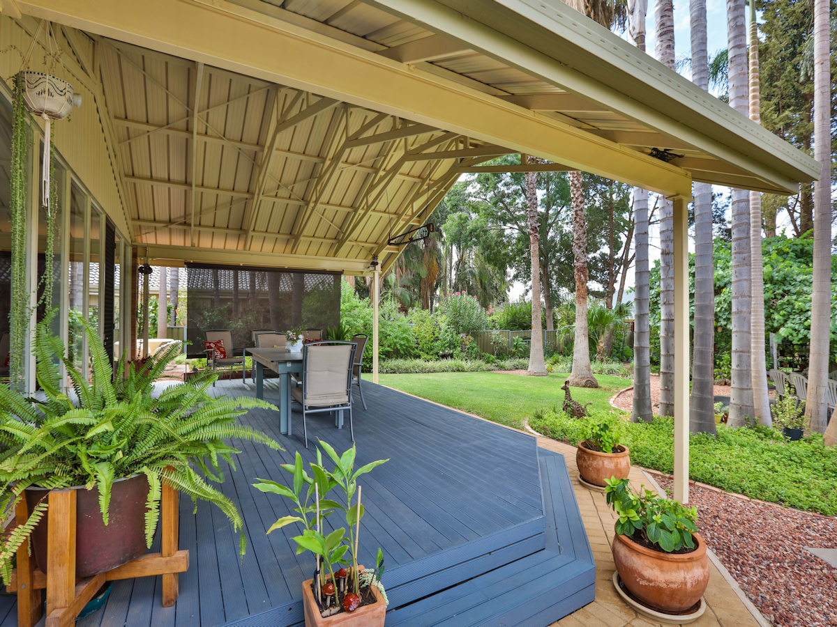 Nestled in one of Mildura's finest streets, this beautiful home boasts 4 bedrooms, 2 bathrooms and 2 great living zones with a large office and modern spacious kitchen. Complete with brand new evaporative aircon and 4 reverse cycle split systems, beautiful new bathroom, and cathedral ceilings throughout. Step outside to a stunning sanctuary, with two fantastic outdoor entertaining areas overlooking the most sensational garden in the best garden street in Mildura! There is a great brick workshop/shed with floor, lights, power and two extra storage rooms, and a double garage. All set on fabulous family-friendly 1500m2 close to schools and shops - families looking for size and space in a great part of town, simply won't find better!