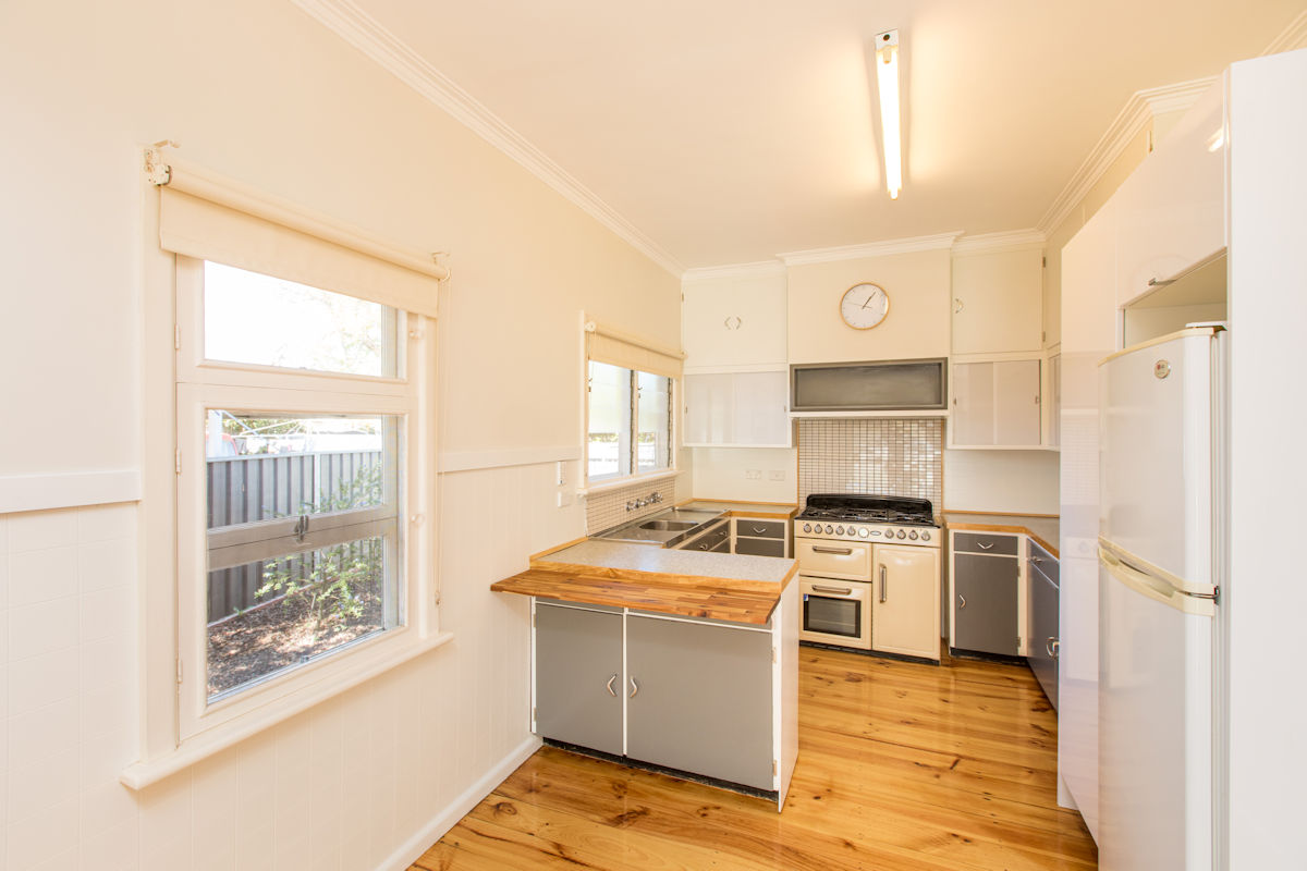 Just move in and love this charming home! Featuring stunning polished floorboards throughout, high ceilings, and beautifully renovated kitchen & bathroom. The huge master bedroom, and generous second bedroom, both have built in robes, and the home has been fully re-stumped throughout. The air conditioning ducting is new and the lounge features a charming wood fire for the colder months! Outside there's a great yard, with entertaining area, a 5m x 7m shed, and easy rear yard vehicle access. Complete with spacious front porch and fully irrigated rear and front yards, this first home or investment is a great step into the market!