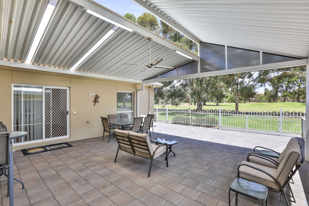 Superbly located, overlooking the picturesque Mildura Golf Course, looking towards the 5th green, this home offers the ultimate in low maintenance living for the golf lover. With direct course access from the rear of the property, the home features generously sized air-conditioned bedrooms with an ensuite plus his/hers walk through robe to the master, repainted and new lighting throughout. The central fully appointed spacious kitchen boasts tranquil views of the golf course, while the adjoining meals and living zone, with split system air conditioning, flows out to the large, stunning, & fully paved, pitched roof alfresco (with blinds) providing relaxation all year round. Complete with zero maintenance gardens and Mildura's CBD, parks, & medical precinct nearby, don't miss this rare find.