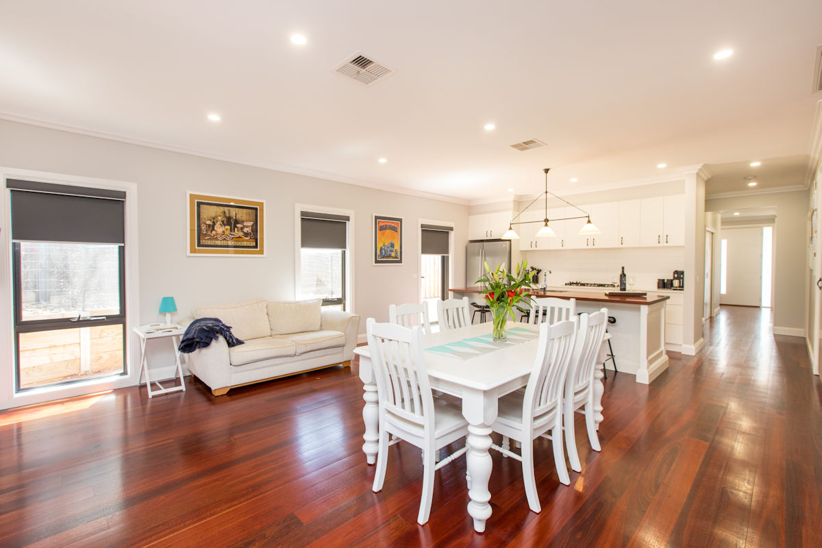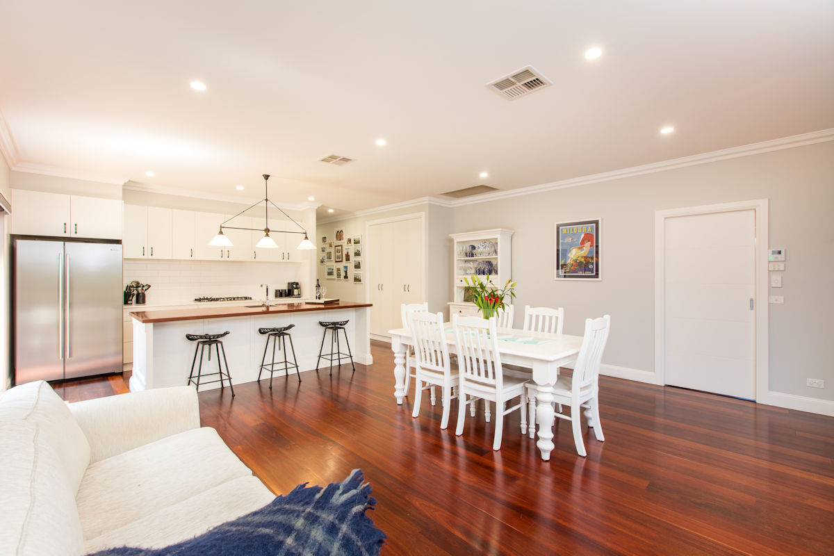 Sophisticated Hampton Style high quality living at its finest in Mildura's Marina. Step inside this beautiful 4 bedroom home & you will feel the luxury! Featuring stunning polished Jarrah floor boards throughout, with 9 ft ceilings, r/c ducted a/c, separate lounge room, 4 large bedrooms, master suite with luxurious ensuite & walk in robe. An amazing kitchen complete with 900mm cooktop, stone benchtop with an island bench featuring a timber bench top! The entertainers kitchen overlooks the spacious dining & family living zone. Entertain all year round in the outdoor area with an outdoor kitchen complete with stone benches, outdoor heaters, blinds, & timber ceiling. Double garage & low maintenance secure yard, this home will suit buyers after a quality home in the Mildura Marina.
