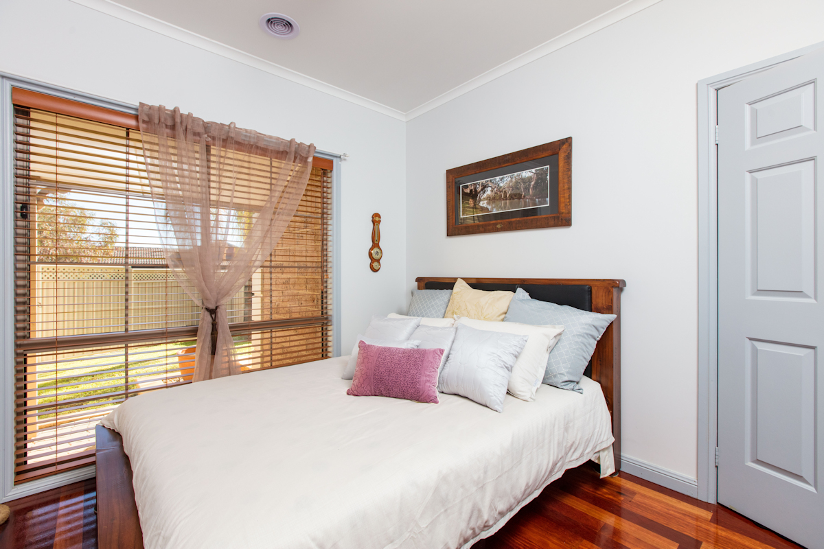 Beautifully maintained home located in one Mildura's finest streets is this wonderful ashlar brick veneer home. Featuring four large bedrooms & a study, with the master bedroom boasting a huge sun-filled ensuite. Entering this home you will find stunning Jarrah floorboards, high ceilings, as new kitchen with all new appliances, massive formal lounge with wood heater & ducted natural gas heating for your convenience, two separate living zones, and the office of the home offers an outlook sure to impress! Outside features a great outdoor entertaining area and low maintenance yard with brick workshop and double garage, Set on a large corner block offering great rear access to the back yard, great for boats, camper vans or caravans, with enviable location & quality throughout this is a must inspect!
