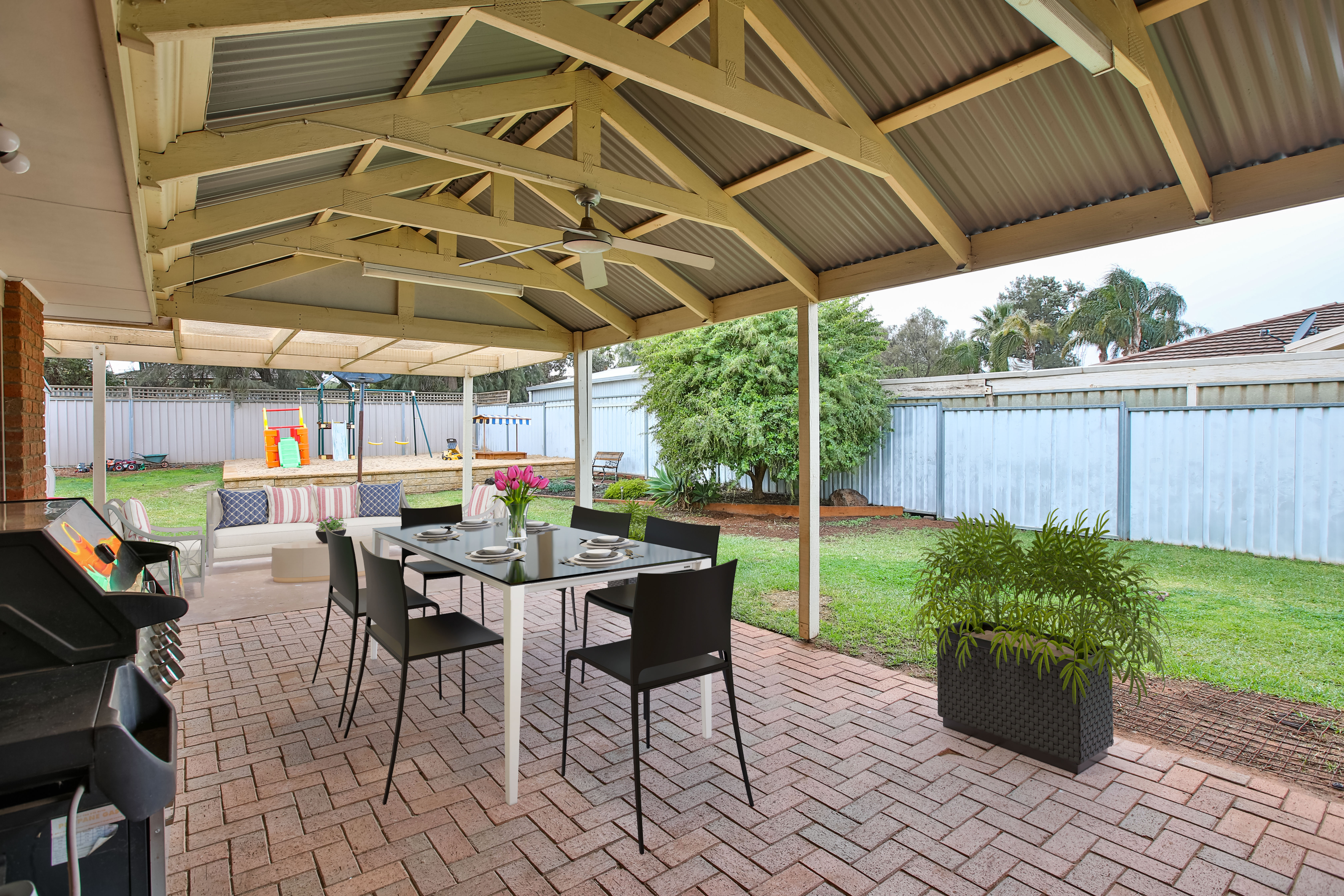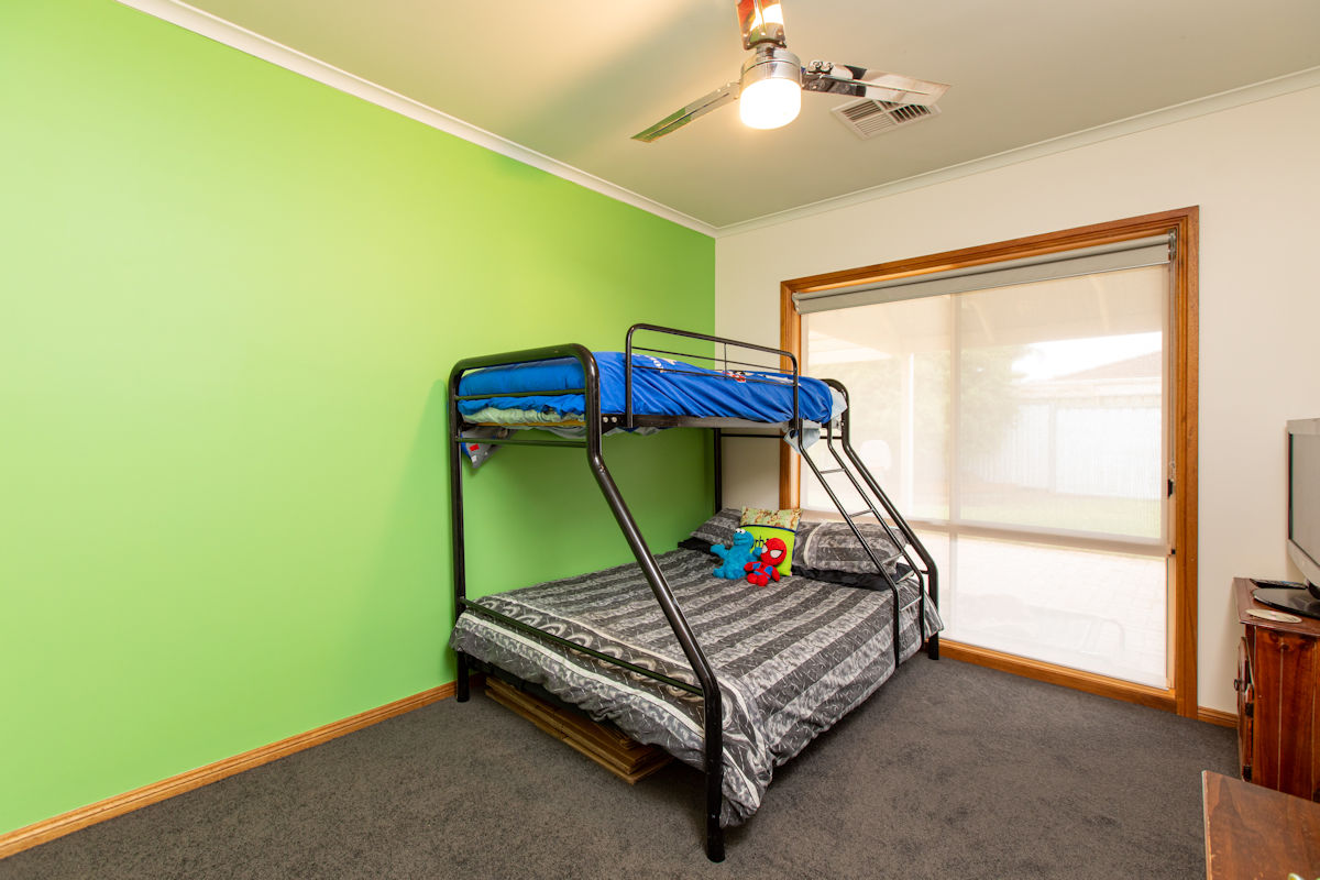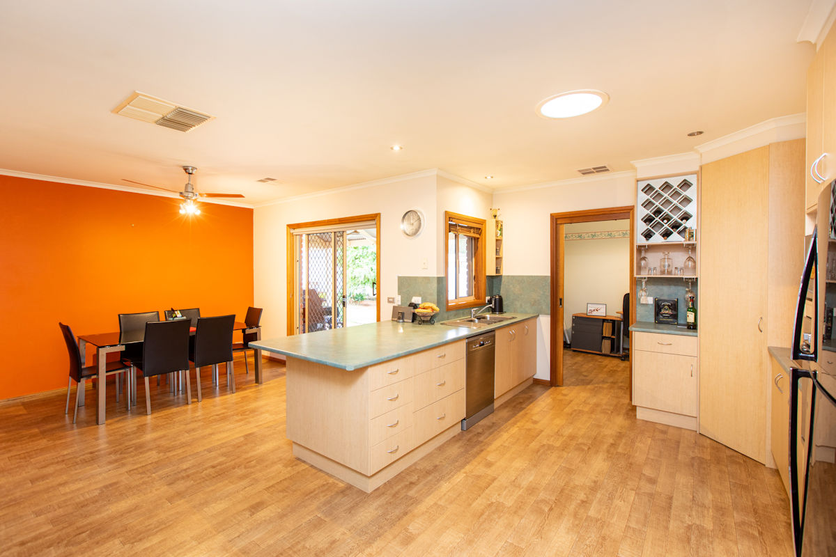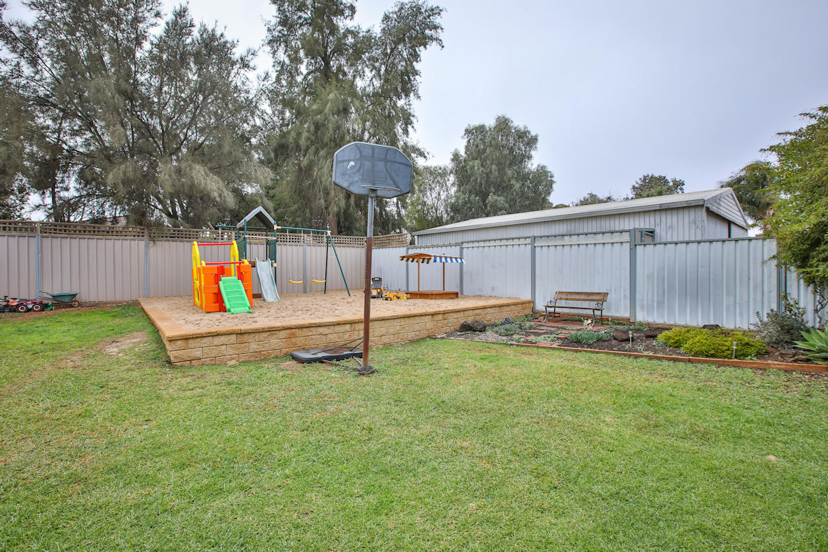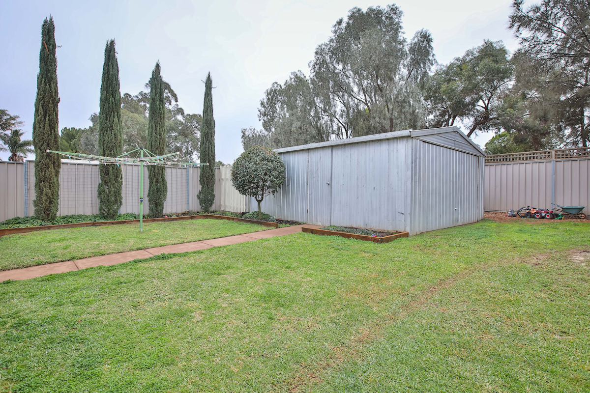 Beautifully presented 3 bedroom, 2 bathroom home in one of Irymple's most popular areas is this spacious Family home. Featuring two separate living zones (incl formal lounge with modern high raked ceiling), study/office, huge kitchen overlooking the second living zone and generous fully undercover outdoor area. The home has modern ducted and zoned reverse cycle unit and high ceilings throughout and 5kw solar to keep the power bills right down! With vehicle access to the spacious and neat rear yard, which features a kids playzone and large shed (with floor, lights and power) and the greenbelt walking track to the rear, just a short stroll to Irymple shops and parks - families don't miss this rare find!