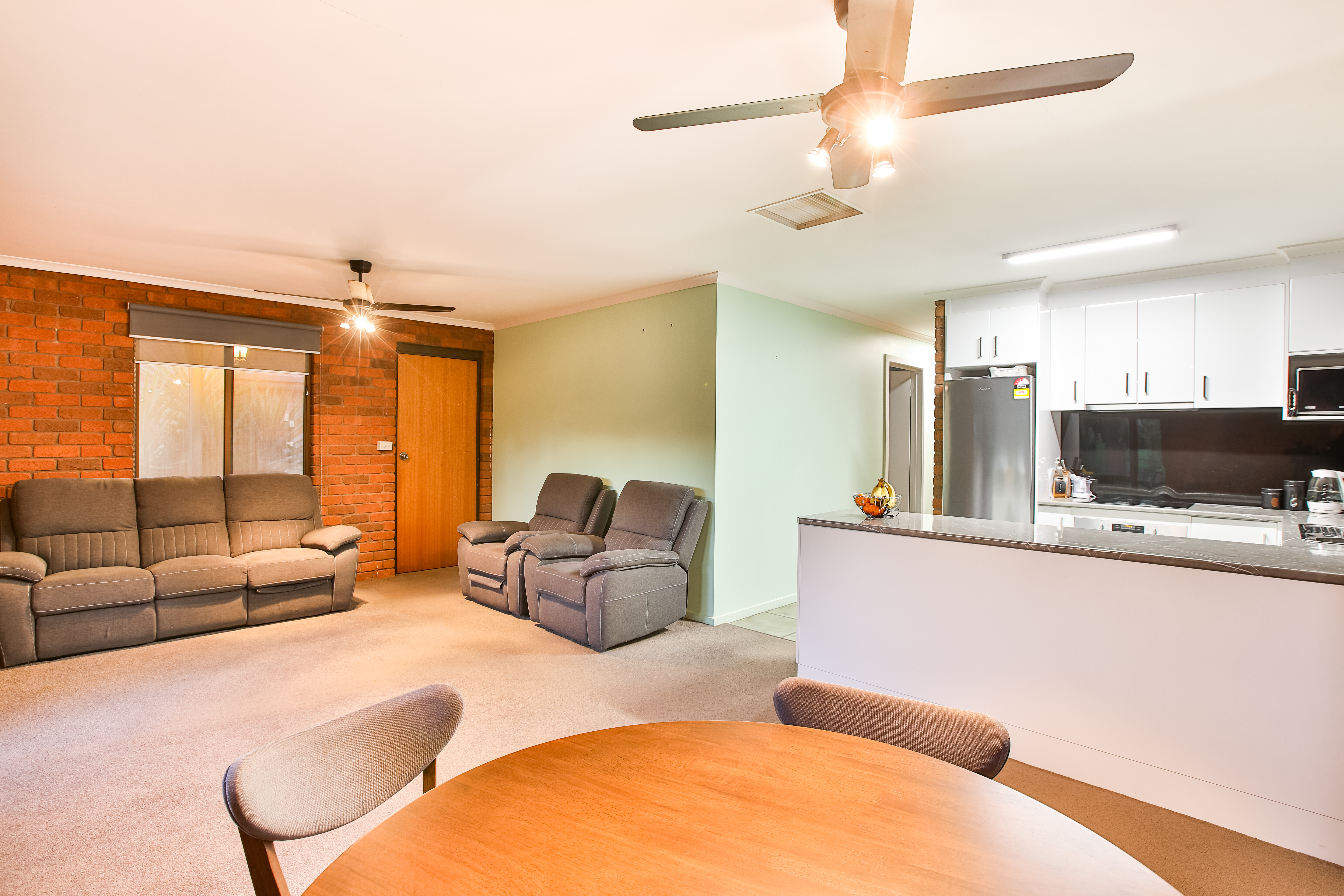 Offering modern kitchen with updated oven and cooktop, split system + evap for heating and cooling as well as fans in bedrooms and living area for year round comfort.