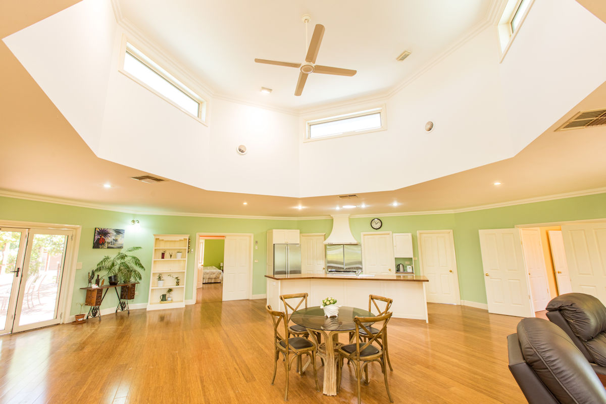 Massive family property on 7 acres only minutes from town! This expansive property features a massive 4 bedroom home, master with huge WIR, ensuite & parents retreat; totally surrounded by timber decking and multiple outdoor entertaining areas (incl. huge Gazebo & pizza oven). With a stunning kitchen & butlers pantry, 900mm cooker and huge living area with an amazing atrium ceiling that is a show stopper & hard wood flooring throughout. Outside there is a spacious 1 bedroom cabin with bathroom, fantastic for the big families or teenagers retreat. With massive shedding, solar, and set on 7 acres planted to dried fruit (Sunglobe Sultana) with an orchard of fruit trees, up to 12 megs of rural water, plant & equipment, and plenty of room for everything you want, and it's all just minutes from town!