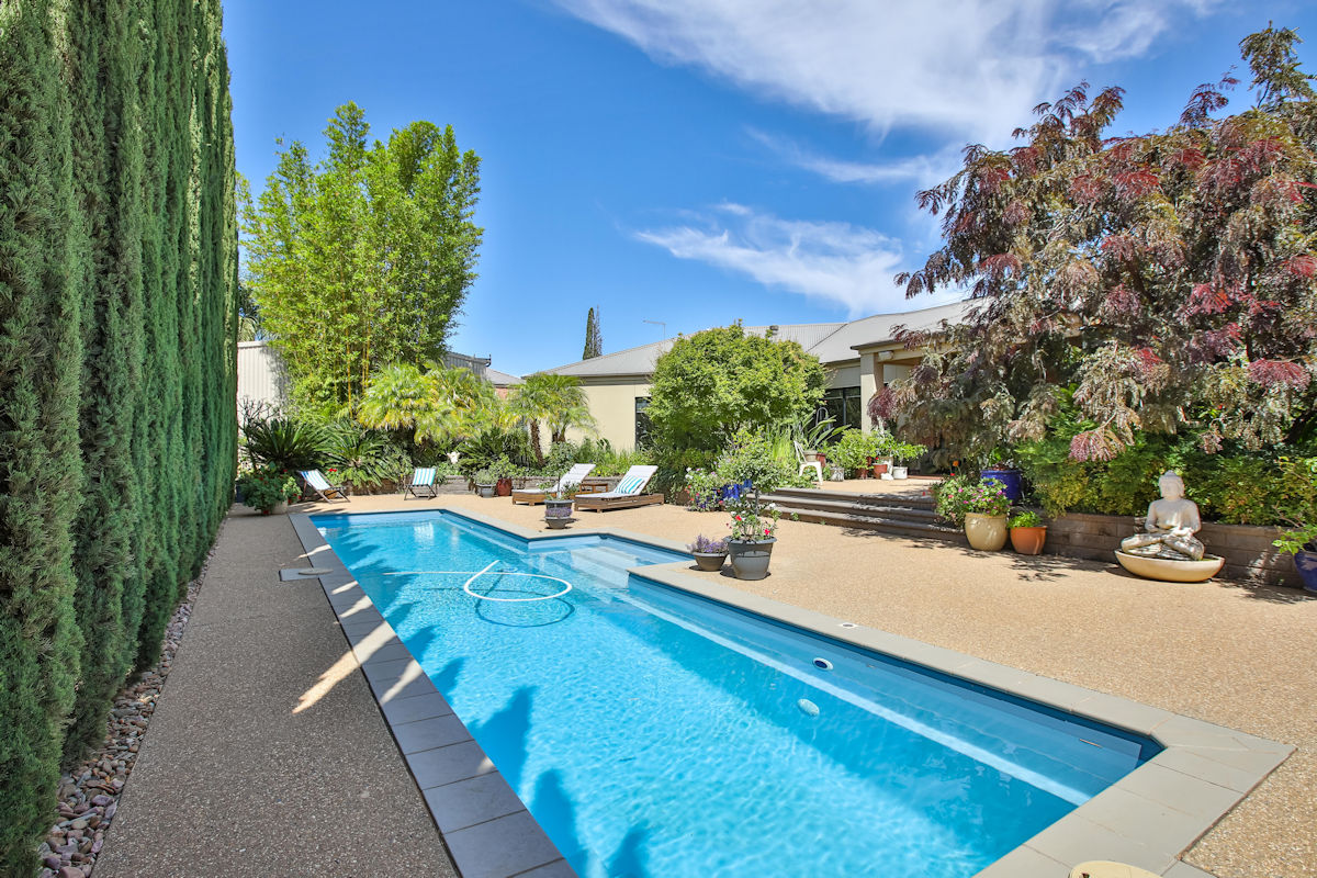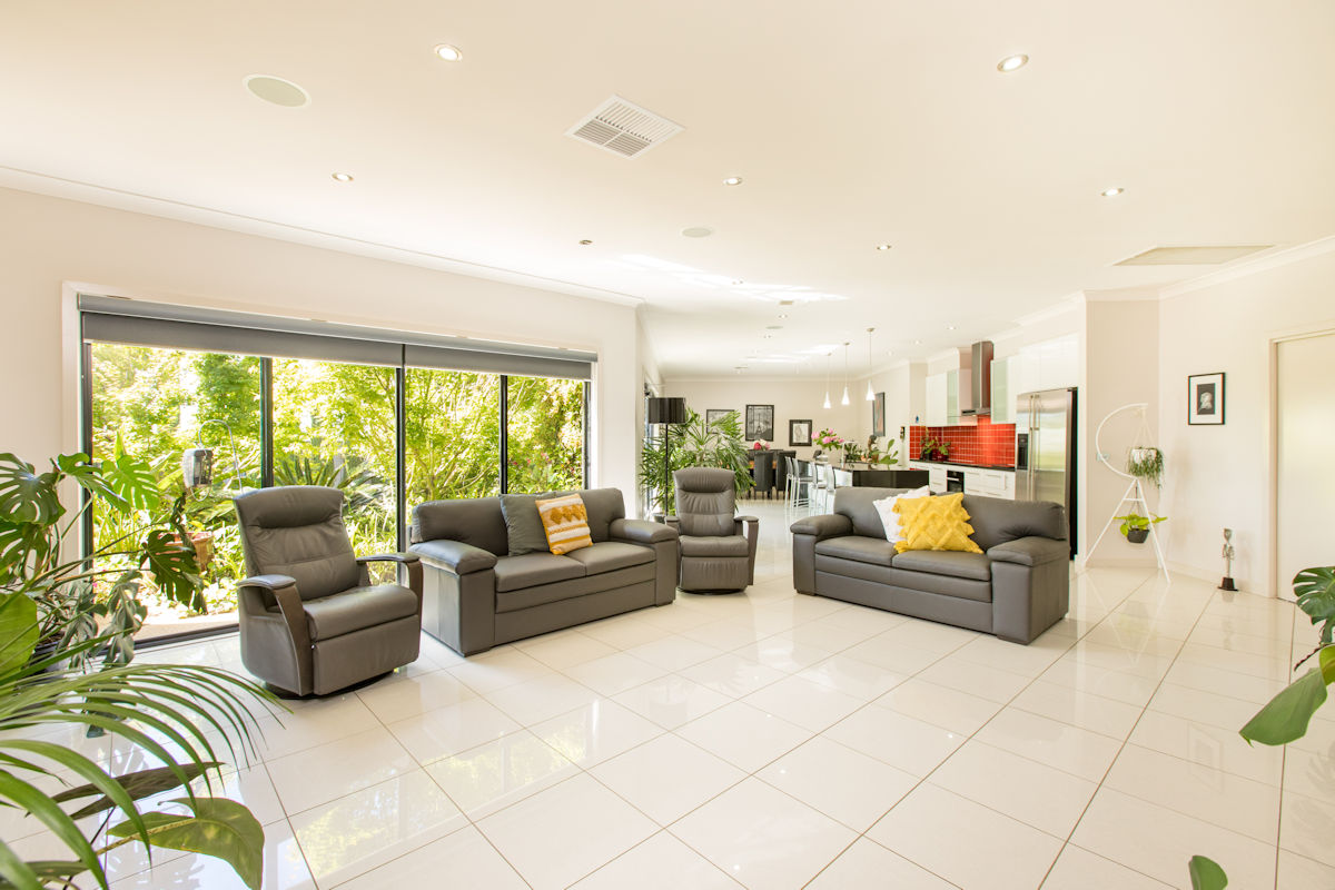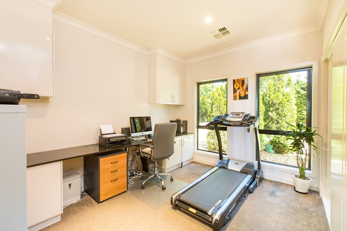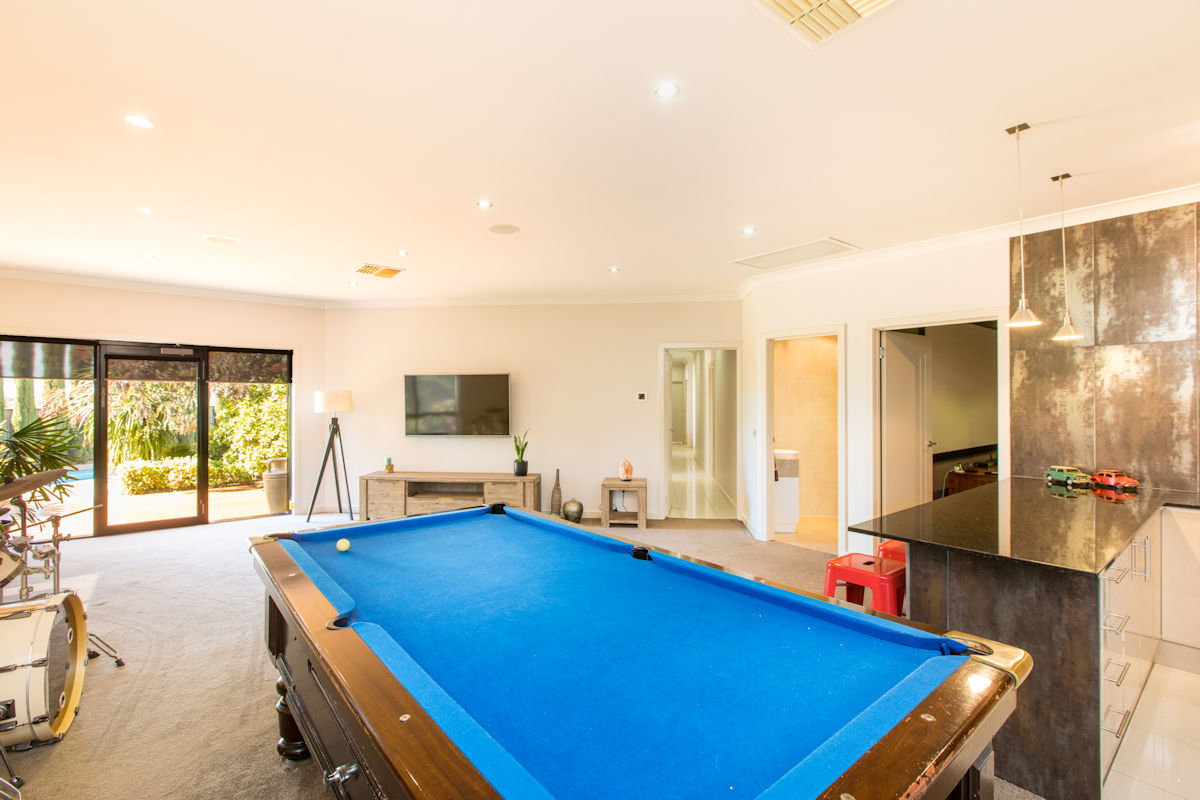 Featuring three spacious bedrooms all with walk in robes and private bathrooms and awesome home office or 4th bedroom. With separate living areas, one wing boasts a huge theatre room and games room with kitchen and bathroom! The amazing main kitchen features granite benches throughout with an enormous butlers pantry (with oven and sink), all of the finest quality appliances one could dream of, beautiful views overlooking the stunning rear gardens & pool. Outside features a 12m x 8m shed (with rear access, high clearance, floors, lights and power), huge 16kw solar, and a vacant half an acre of land to do with what ever you like, to run a business with its own separate entry or just build your own tennis court or bike track (the choice is yours)!