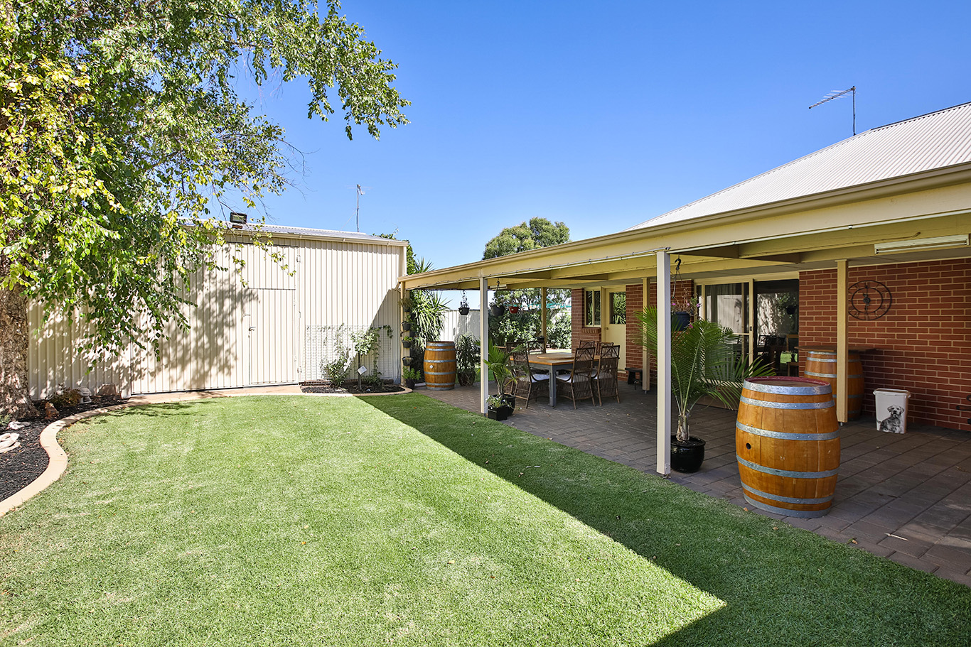 This beautiful home will impress with it's great street appeal from first sight! Featuring 3 spacious bedrooms, 2 bathrooms & 2 separate living zones, this is a quality Dunning built home. With a huge modern kitchen boasting new appliances overlooking the family/dining room, it's sure to impress the chef in the family, and complete with reverse cycle ducted A/C and freshly painted throughout - just move in and relax! Step outside and you will find stunning established low maintenance gardens with auto sprinklers, a great entertaining area and huge shed with floor, lights, power, & mezzanine - a great man cave! This property also has real side access for caravans, boats & cars, secure to lock up and travel. Set in a great part of town, walking distance to schools & Mildura Central this will not last!