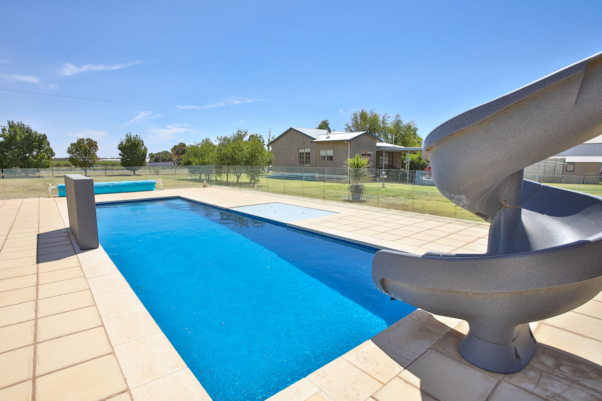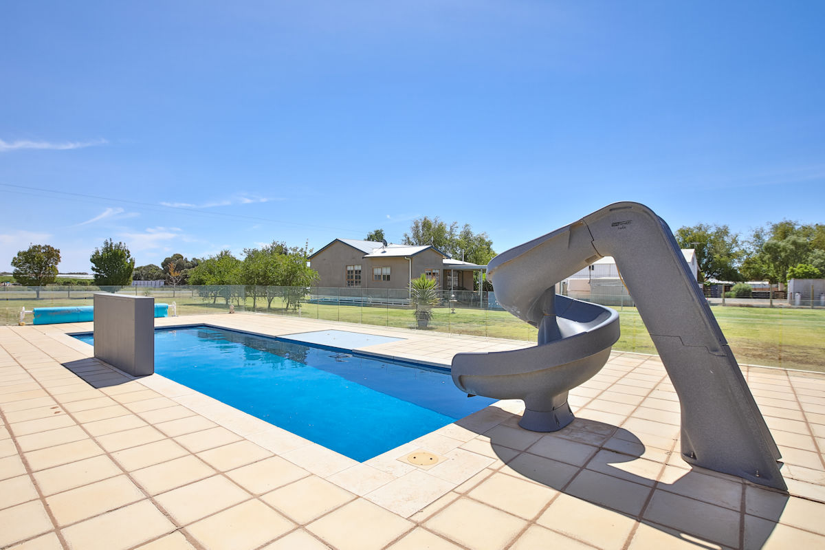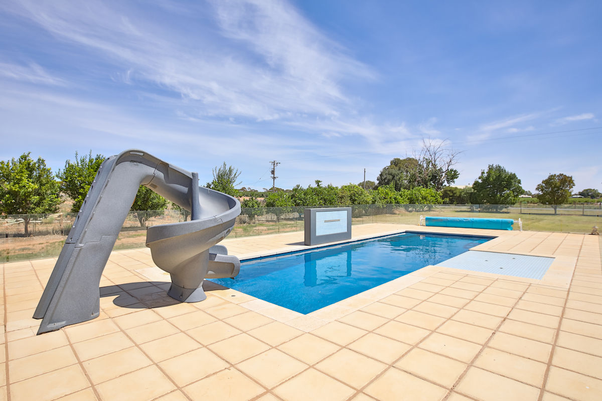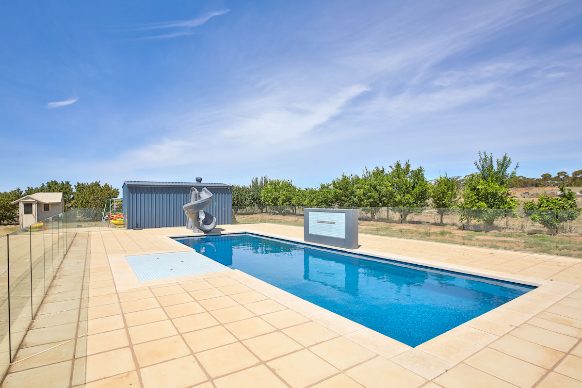 Well presented three bedroom home, set on spacious 3000m2 (3/4 acre) close to town. Refurbished throughout with built-in robe to main, large bathroom, new ducted reverse cycle heating and cooling and wireless TV throughout. Outside features good shedding, undercover outdoor entertaining area, stunning in-ground pool with in floor cleaning, 15kW heat pump, pool blanket, disco lights, water feature sitting area, pool slide and fully enclosed with glass fencing! With plenty of room for the kids to run around, surrounded by a variety of fruit trees, fenced and complete with 2 megs of rural water and ample car parking space. Young couples and families wanting to escape suburbia but still be close to town - your search is over!