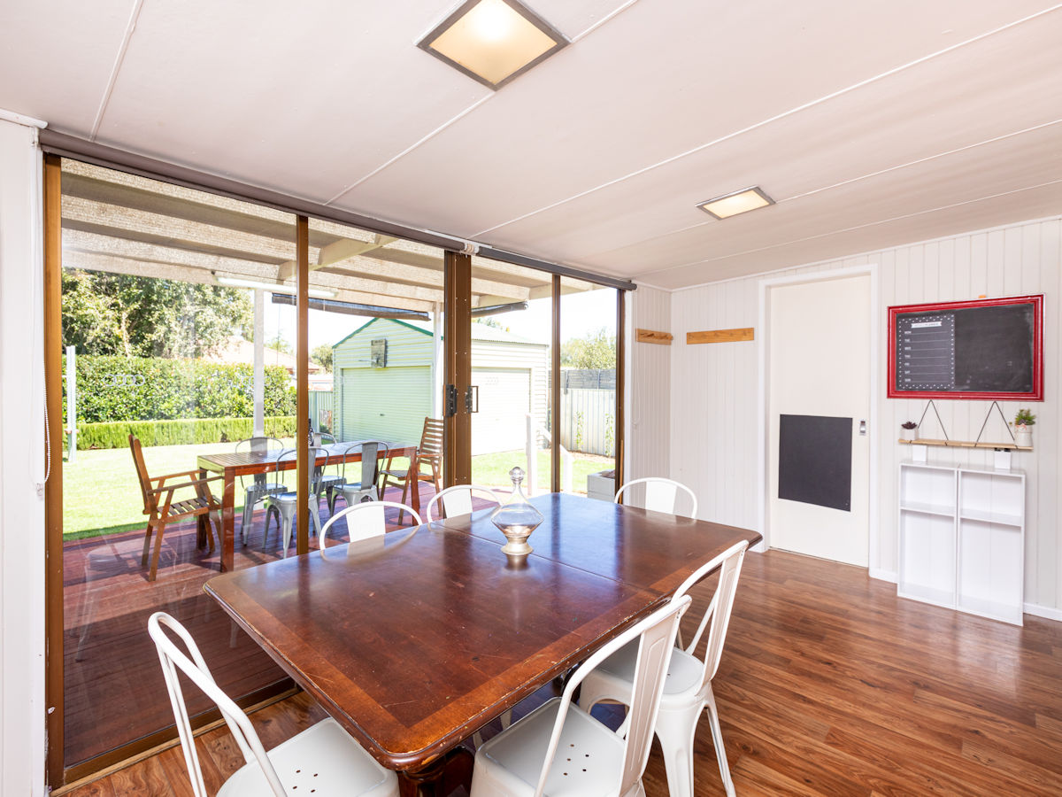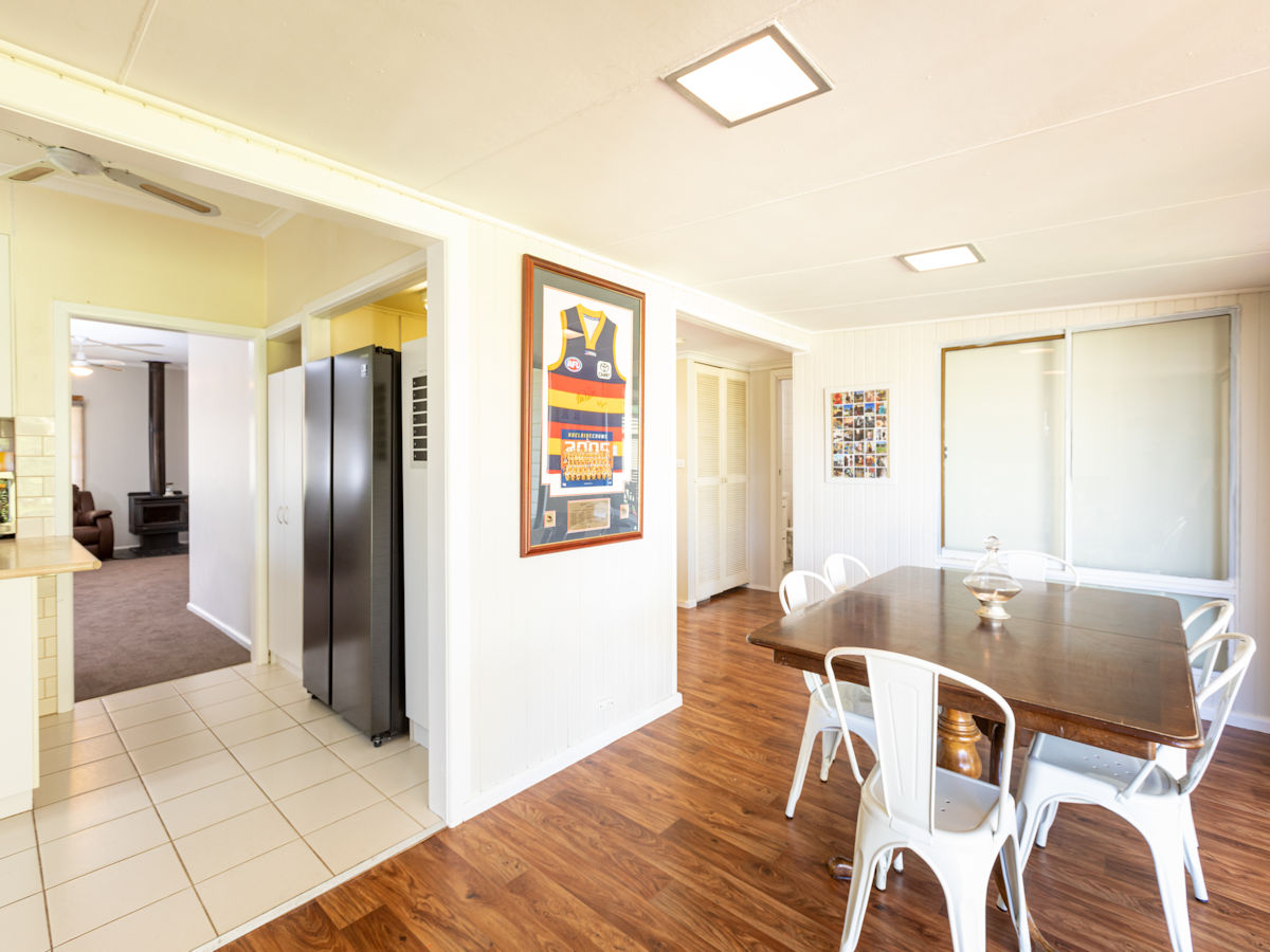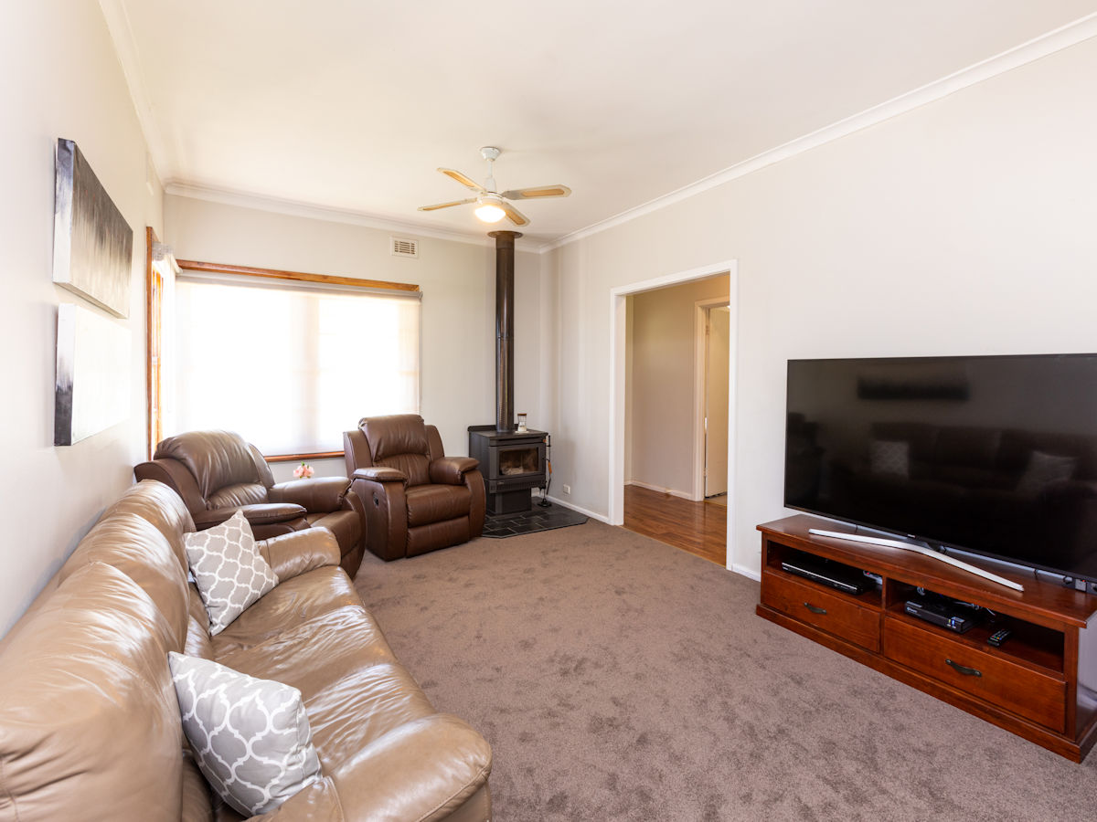 A huge lounge room features a Coonawarra Wood Heater, new carpet and a study nook. Evaporative air-con is ducted throughout the home.