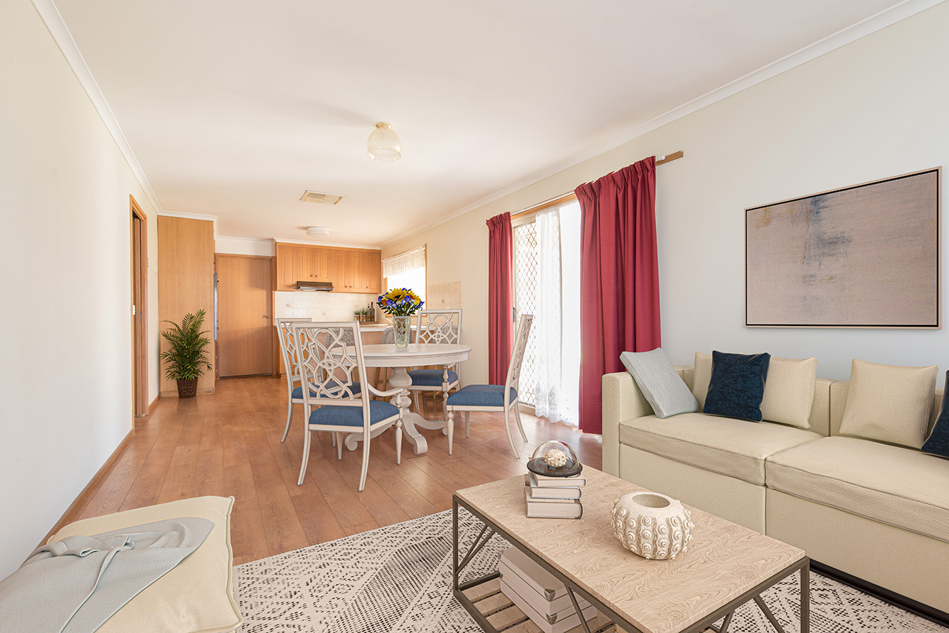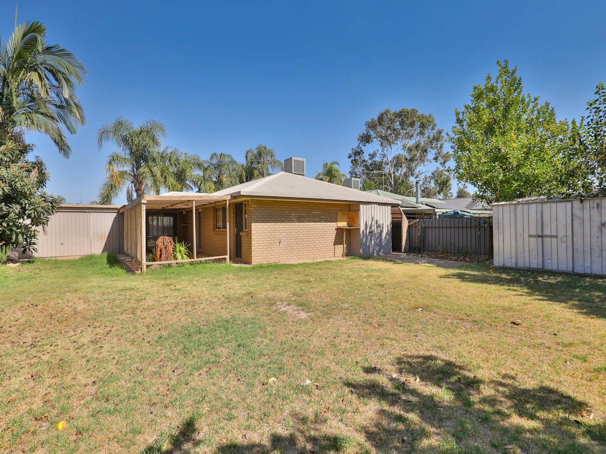 Well-located three bedroom, two bathroom brick veneer home close to Mildura Central Shopping Centre. Featuring open living plan with spacious lounge, floating timber flooring to the dining areas and the generous kitchen which overlooks the undercover outdoor entertaining area. The master bedroom features ensuite & WIR robe with built-in robes to the remaining two bedrooms. Complete with shed and well-proportioned, easy to maintain rear yard, lock-up double carport, located close to shops but also ample public transport nearby!