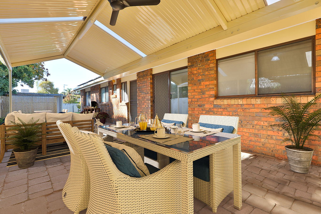 Superbly rejuvenated throughout is this solid three bedroom, two bathroom home. Located close to shops and Trinity Lutheran College, this wonderful home features new flooring and painting throughout, as-new kitchen, and stunning new bathroom & ensuite. The massive lounge features bay window & natural gas heater, with ducted cooling throughout the home. The newly tiled kitchen/meals area flows beautifully to the stunning, huge pitched roof outdoor entertaining area (with ceiling fan). With shed & large brick workshop/home office/granny flat, spacious rear yard, 2 car undercover parking with vehicle access to the rear yard, & 3.4kw Solar. Complete with handy location walking distance to shops, Mildura Central Shopping Centre and parkland, and expected rental of $370 per week!