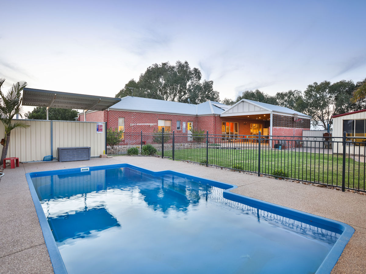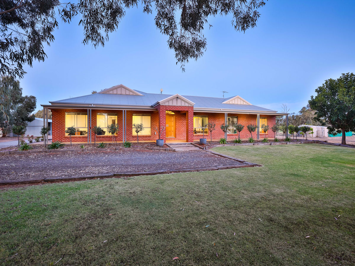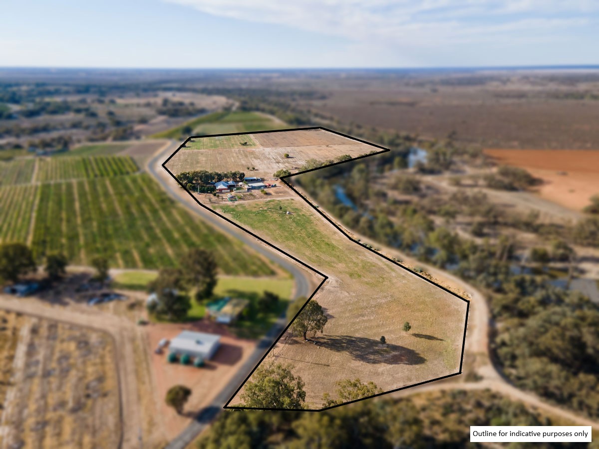 Superbly nestled along peaceful Tuckers Creek is this outstanding lifestyle property. Set on approx. 30 acres, the main residence feels like new and features neutral color schemes throughout, 4 large bedrooms, with two spacious bathrooms and two expansive and separate living zones. There is ducted reverse cycle heating/cooling throughout, solar system connected, and stunning timber kitchen with stone benches and all the mod conveniences you would expect, including 900mm stove with gas cooktop. The meals area flows superbly to the massive outdoor entertaining which is partly enclosed, ideal for all year entertaining complete with benches & BBQ area, ceiling fans & timber ceiling, overlooking the fully fenced rear yard and solar heated in-ground pool. There's a fully self contained granny flat (with kitchen, bathroom, & split system heating cooling), two large sheds, a variety of fruit trees & irrigation infrastucture, and fully fenced paddocks, ideal for sheep and horses. With approx. 750m of creek frontage, location in sought after Curlwaa, close to the Abbotsford bridge and both Wentworth and Coomealla, yet just 20 minute drive to Mildura’s CBD - this is a truly rare opportunity to enjoy a peaceful lifestyle most can only dream of!