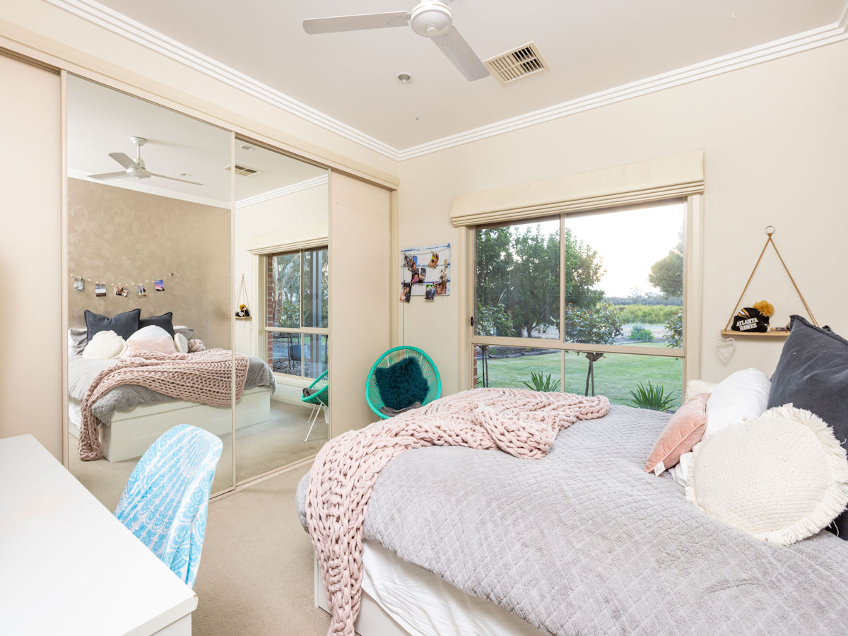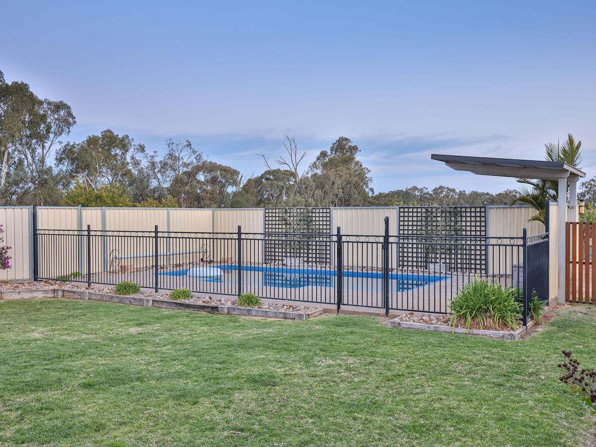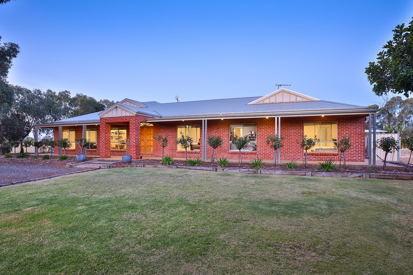 Superbly nestled along peaceful Tuckers Creek is this outstanding lifestyle property. Set on approx. 30 acres, the main residence feels like new and features neutral color schemes throughout, 4 large bedrooms, with two spacious bathrooms and two expansive and separate living zones. There is ducted reverse cycle heating/cooling throughout, solar system connected, and stunning timber kitchen with stone benches and all the mod conveniences you would expect, including 900mm stove with gas cooktop. The meals area flows superbly to the massive outdoor entertaining which is partly enclosed, ideal for all year entertaining complete with benches & BBQ area, ceiling fans & timber ceiling, overlooking the fully fenced rear yard and solar heated in-ground pool. There's a fully self contained granny flat (with kitchen, bathroom, & split system heating cooling), two large sheds, a variety of fruit trees & irrigation infrastucture, and fully fenced paddocks, ideal for sheep and horses. With approx. 750m of creek frontage, location in sought after Curlwaa, close to the Abbotsford bridge and both Wentworth and Coomealla, yet just 20 minute drive to Mildura’s CBD - this is a truly rare opportunity to enjoy a peaceful lifestyle most can only dream of!