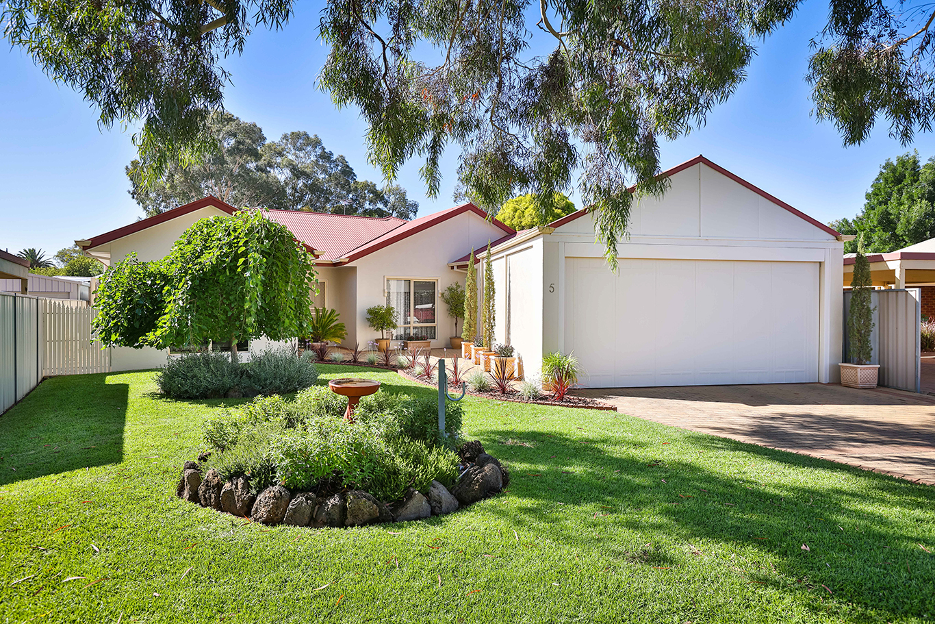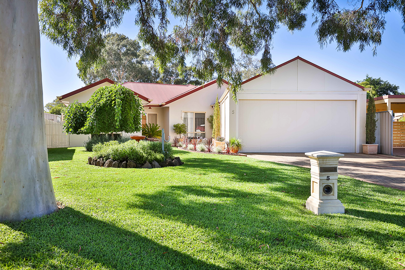 Families searching for a quality home close to the river - your search is over! Tucked away in this peaceful court is this spacious five bedroom home. With quality fixtures throughout, including RC ducted heating & cooling, stunning high timber ceilings and modern kitchen featuring stone benches & WI Pantry, light filled & surrounded by windows overlooking the beautiful outdoors! With four massive bedrooms, master with ensuite & WIR, and large office or 5th bedroom, all with BIRs and a beautiful bathroom with spa. Complete with separate living zones, ample storage, excellent insulation and plenty of WOW factors! Outdoors you will find a sparkling inground pool, shed with toilet, huge paved outdoor BBQ area & grassed play area complete with rear access. All this only minutes from the Murray River.