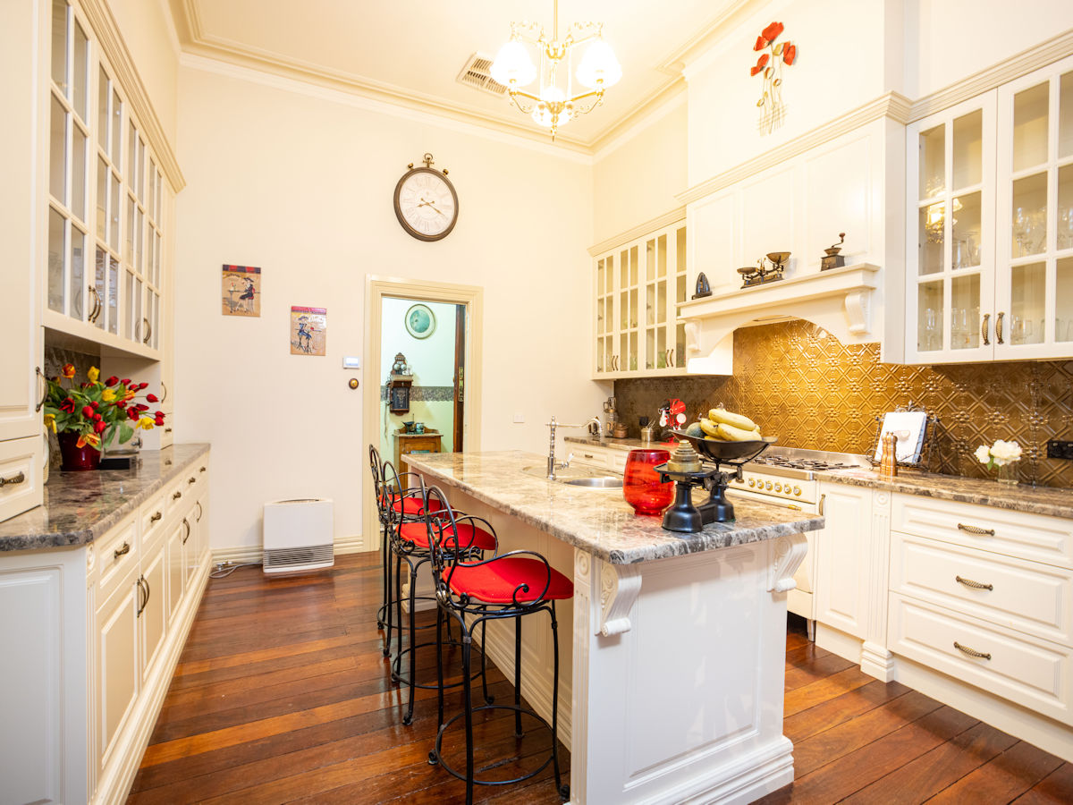 Upon entry you will be moved with the character and quality of this once in a lifetime home! Built in 1904 this grand home has been lovingly moved and completely restored whilst in keeping with the era however, adding the modern conveniences that we all love. With 12ft ceilings throughout, four massive bedrooms all leading out to the bullnose verandah and original lead light & Wunderlich pressed metal - an irreplaceable feature of this home.