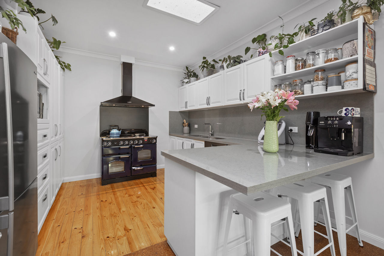 Inside the character & charm remains with a full renovation. Two living zones, with a stunning kitchen featuring a "Falcon" 1010mm oven & stone benchtops throughout, reverse cycle heating & cooling split systems, 9ft ceilings & Baltic Pine floorboards.